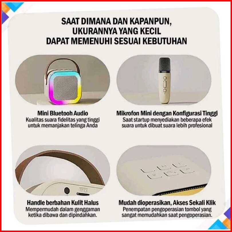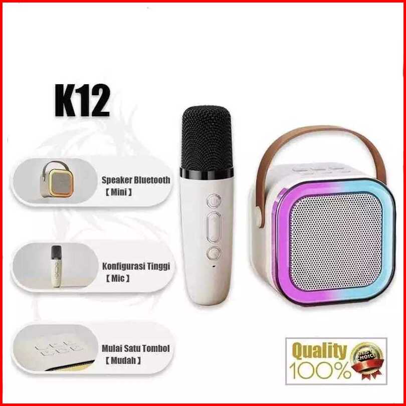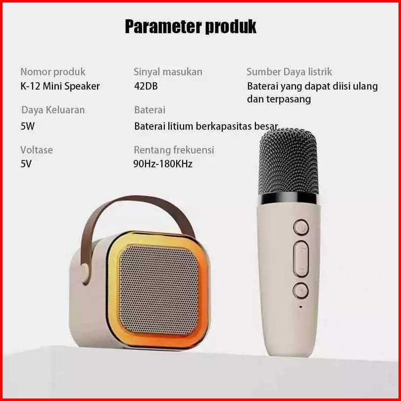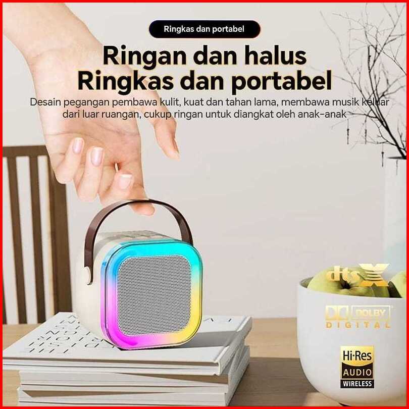 Speaker Mini Karaoke Bluetooth Praktis Rgb 2 Mic Wireless - Speaker Portable Rgb K12 - Mini Size