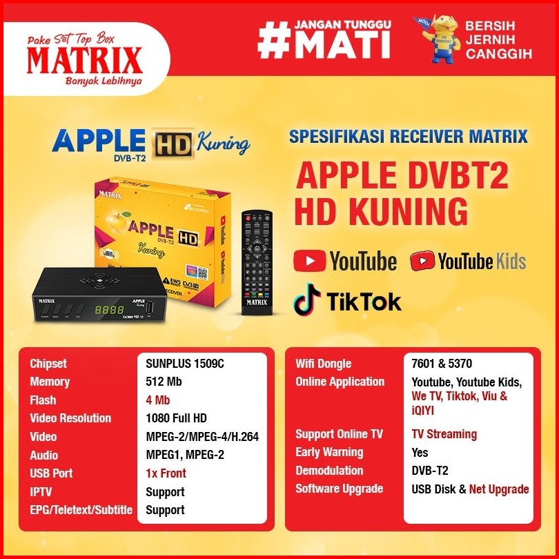 Set Top Box Tv Digital Matrix Apple Dvbt2 Stb Matrix Stb Matrix Apple Merah Setop Box Tv Digital Set Top Box Tv Tabung