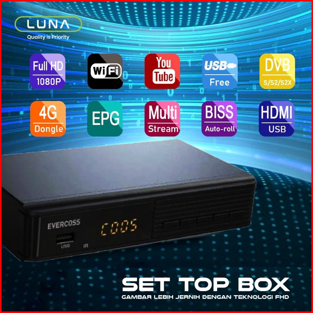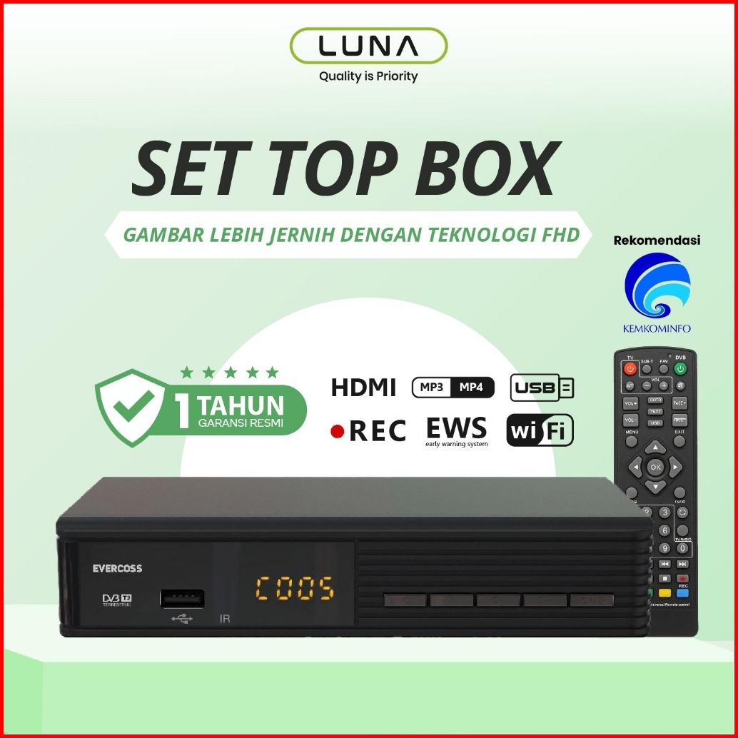 Luna X Evercoss Set Top Box Tv Penerima Siaran Digital Receiver Full Hd Stb Wifi