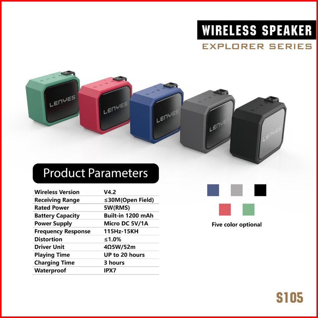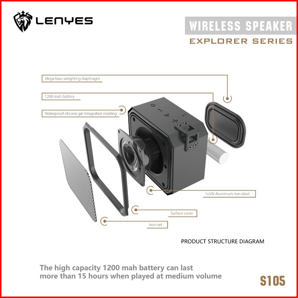 Lenyes S105 Waterproof Ipx7 Outdoor Wireless Bluetooth Hifi Stereo Mini Portable Speaker Original