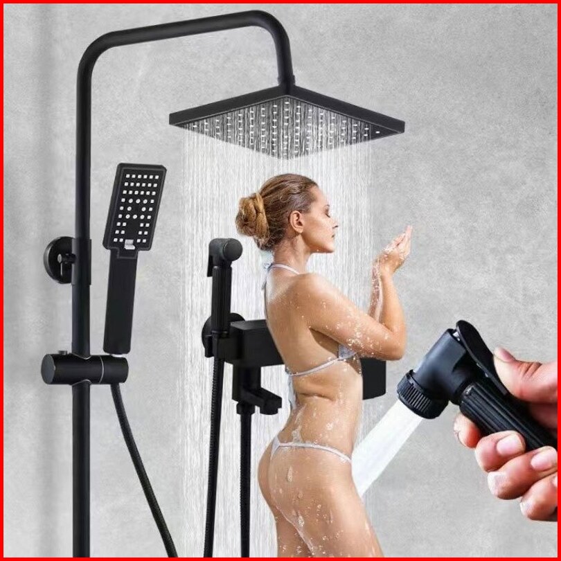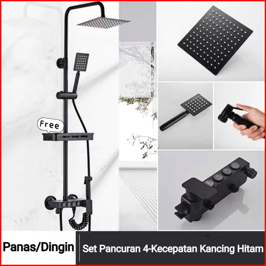 4 Dalam 1 Shower Tiang Set Panas-dingin Set Shower Empat Kios Kancing Hitam Shower Tiang Set Panas-dingin Shower Kamar M