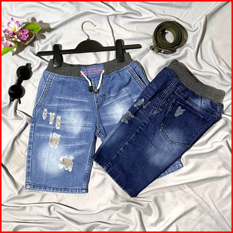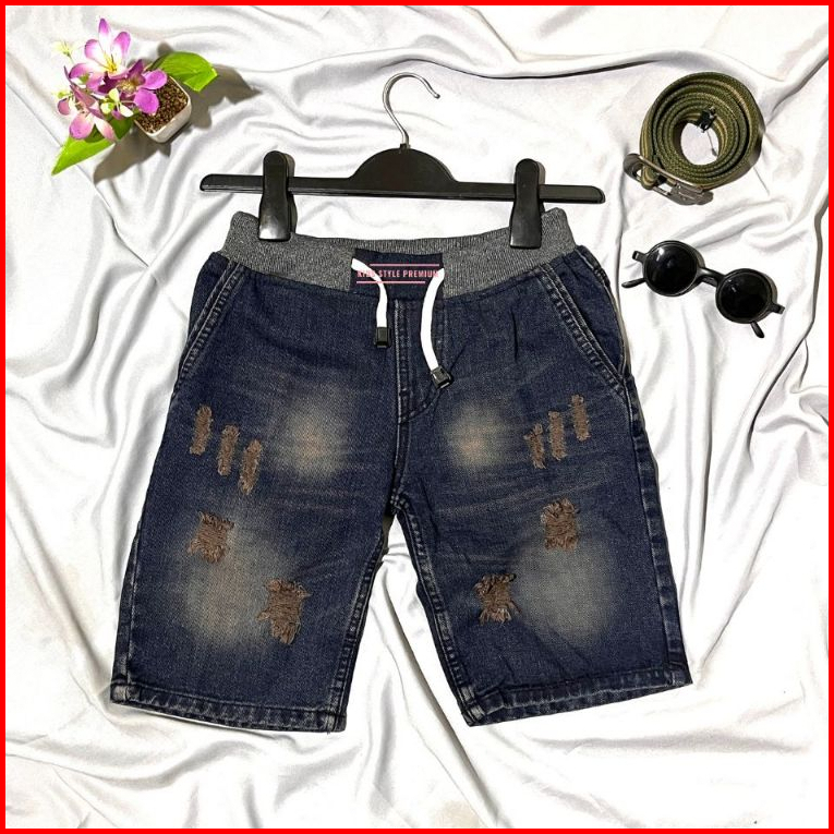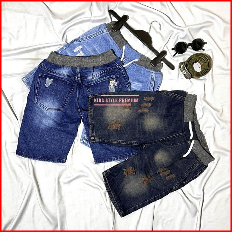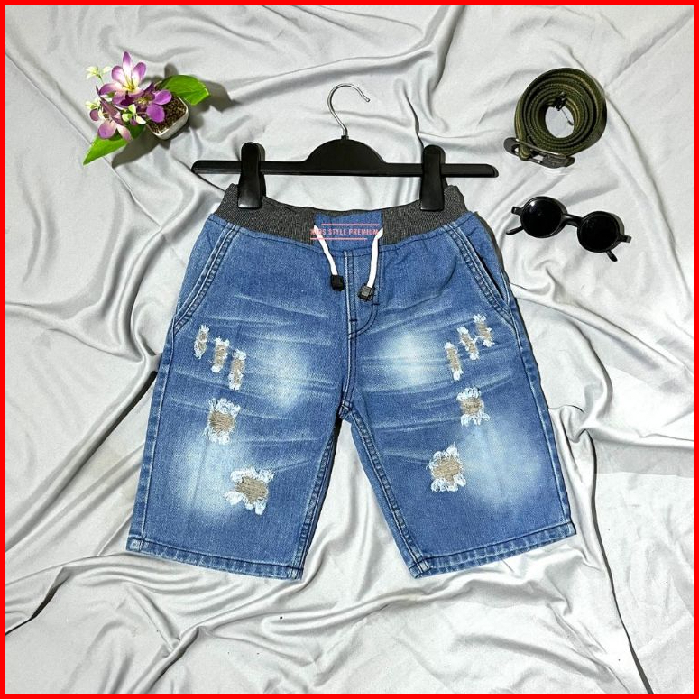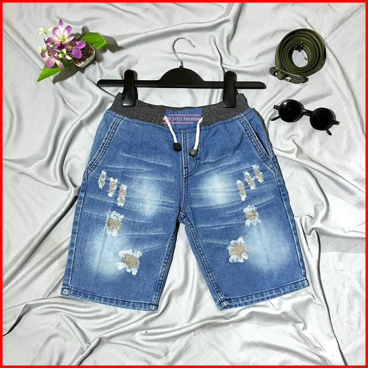 Celana Jeans Pendek Anak Tanggung Motif Sobek Whisker Bahan High Quality Celana Anak Size M L Xl