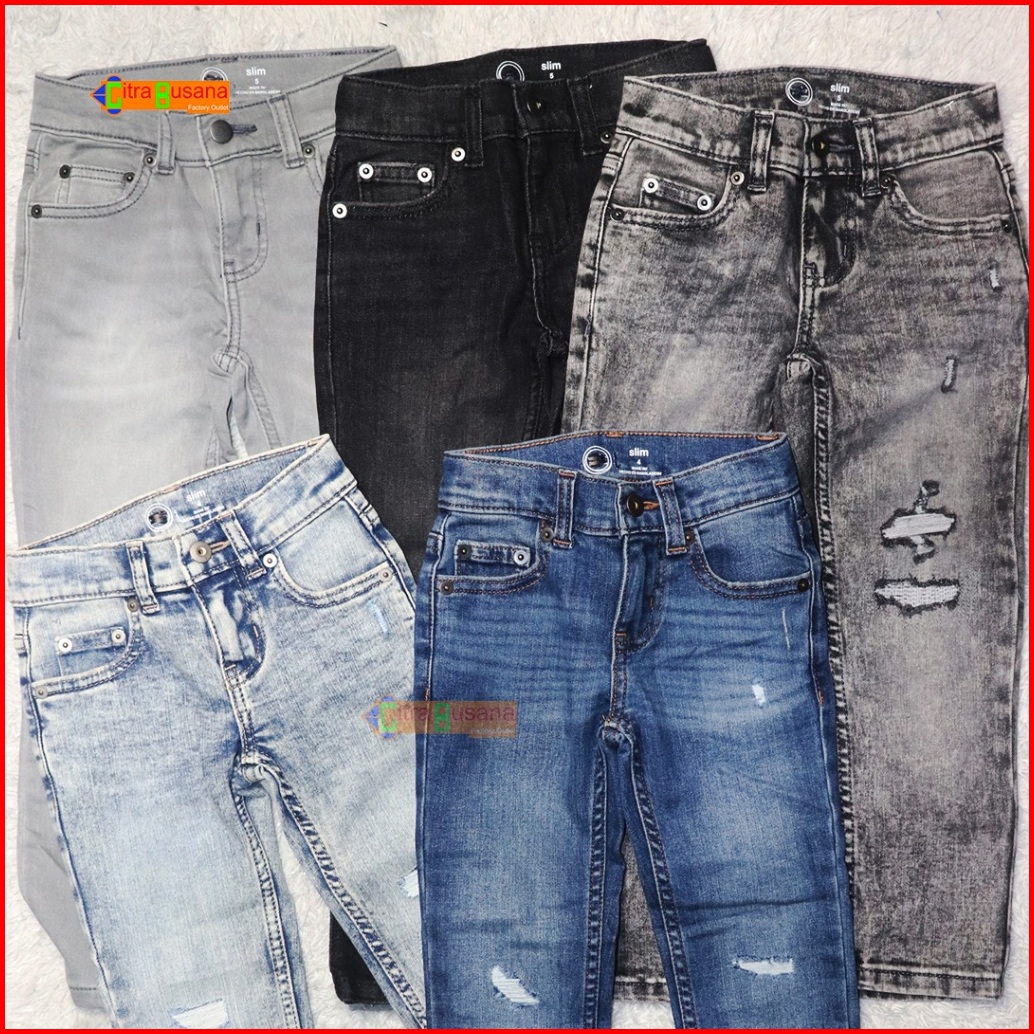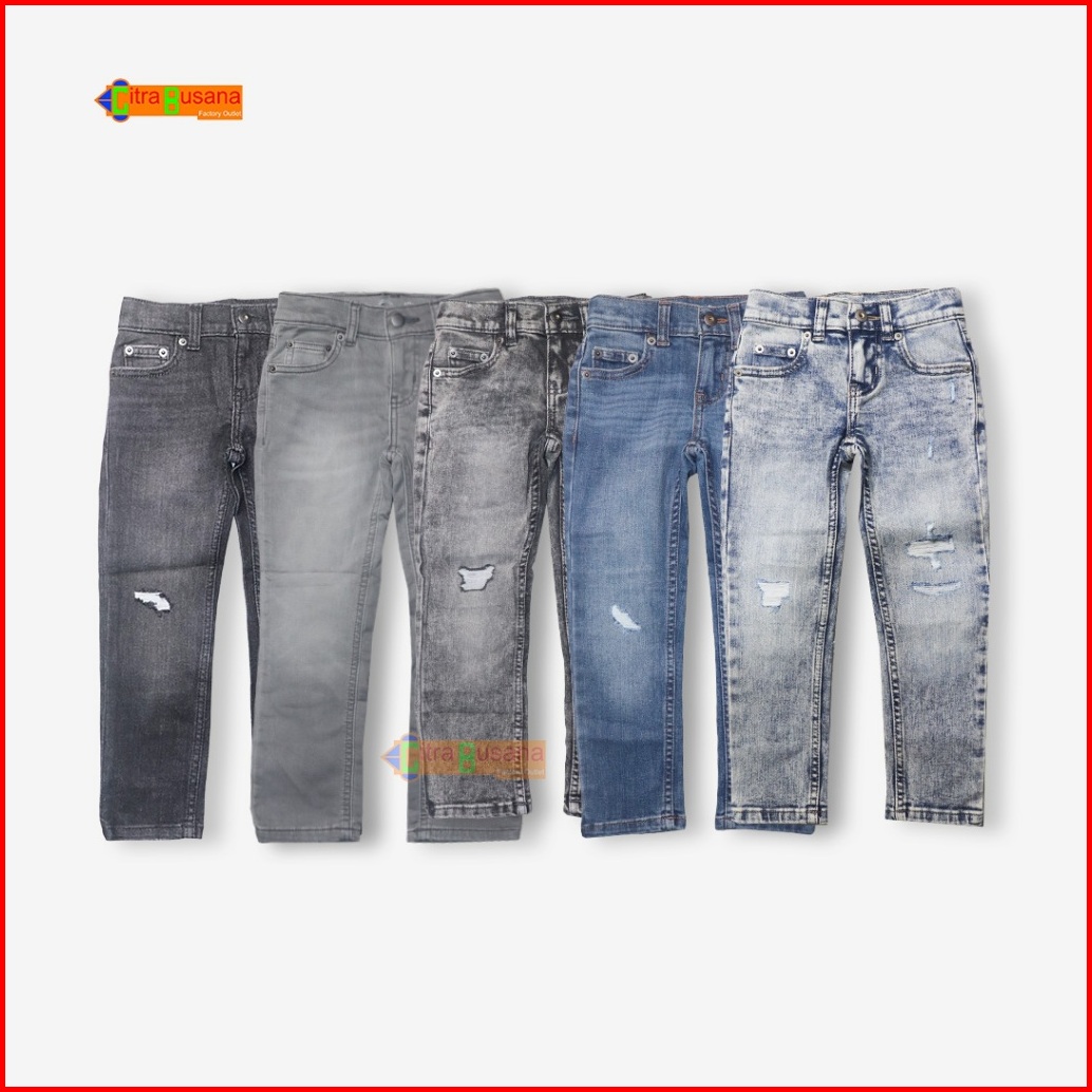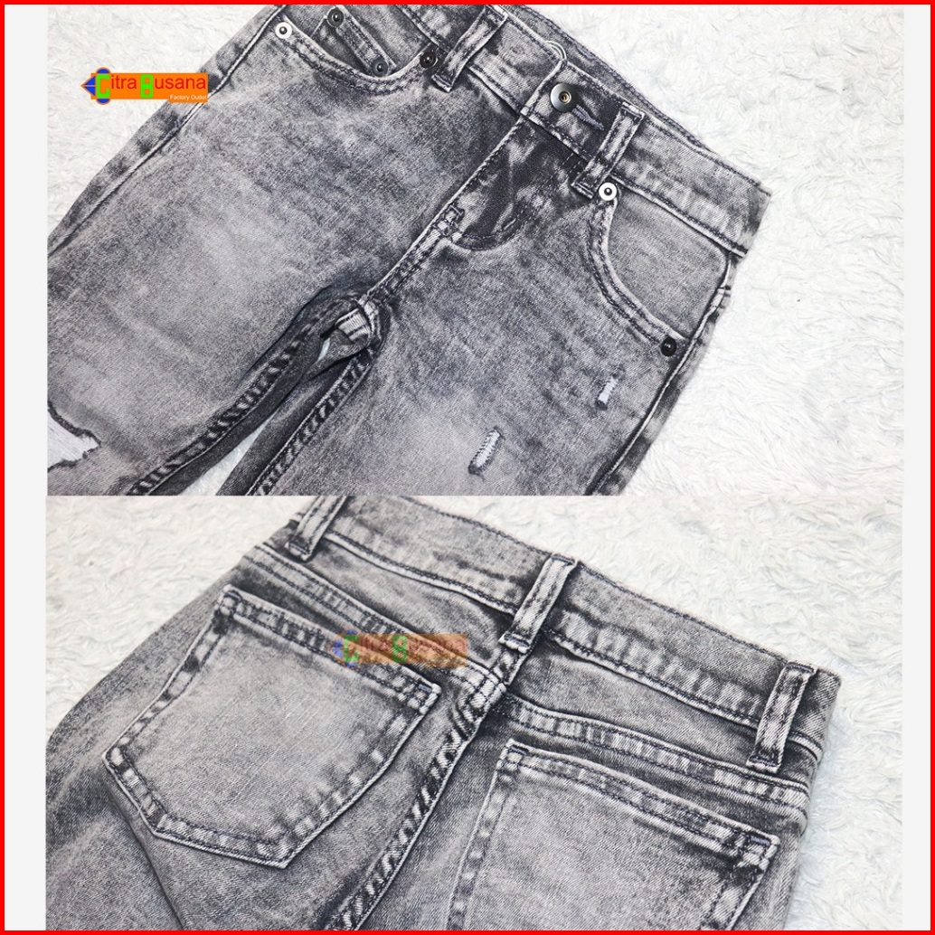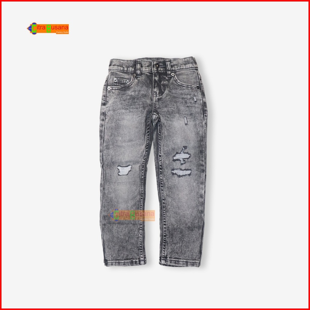 Celana Jeans Panjang Anak - Celana Jeans Snow Grey Ripped Robek - C1874
