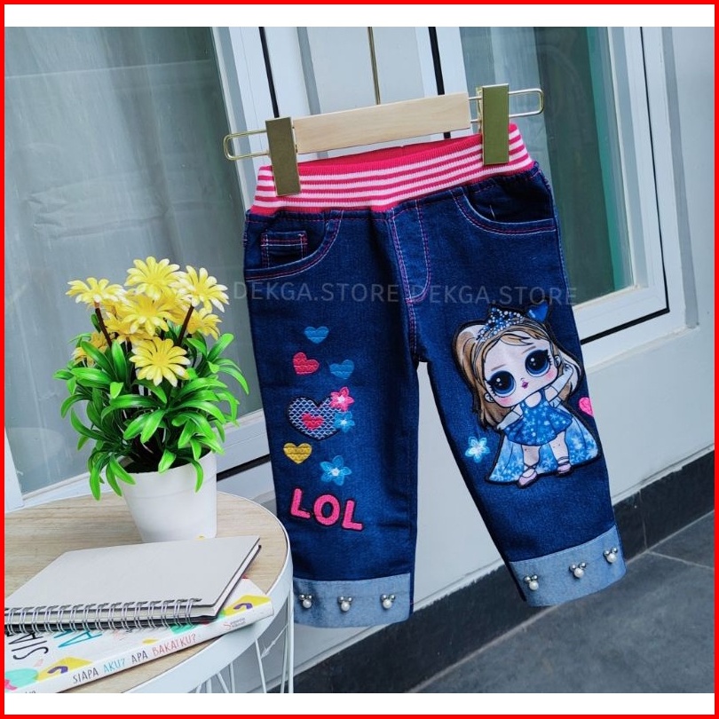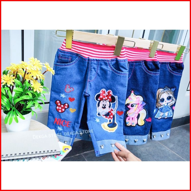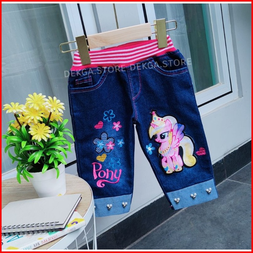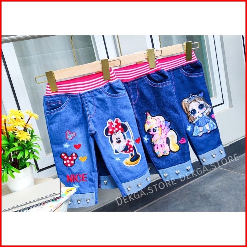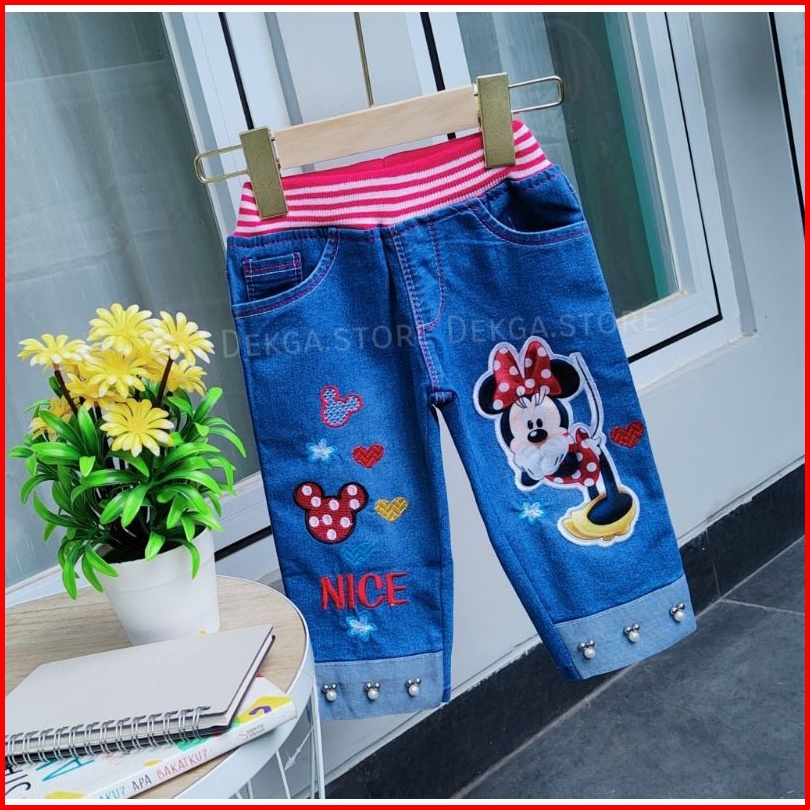 Celana Jeans 7 8 Celana Selutut Celana Harian Motif Bordir Pony Miki 1-12tahun