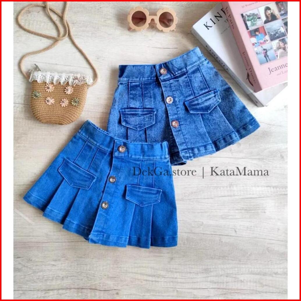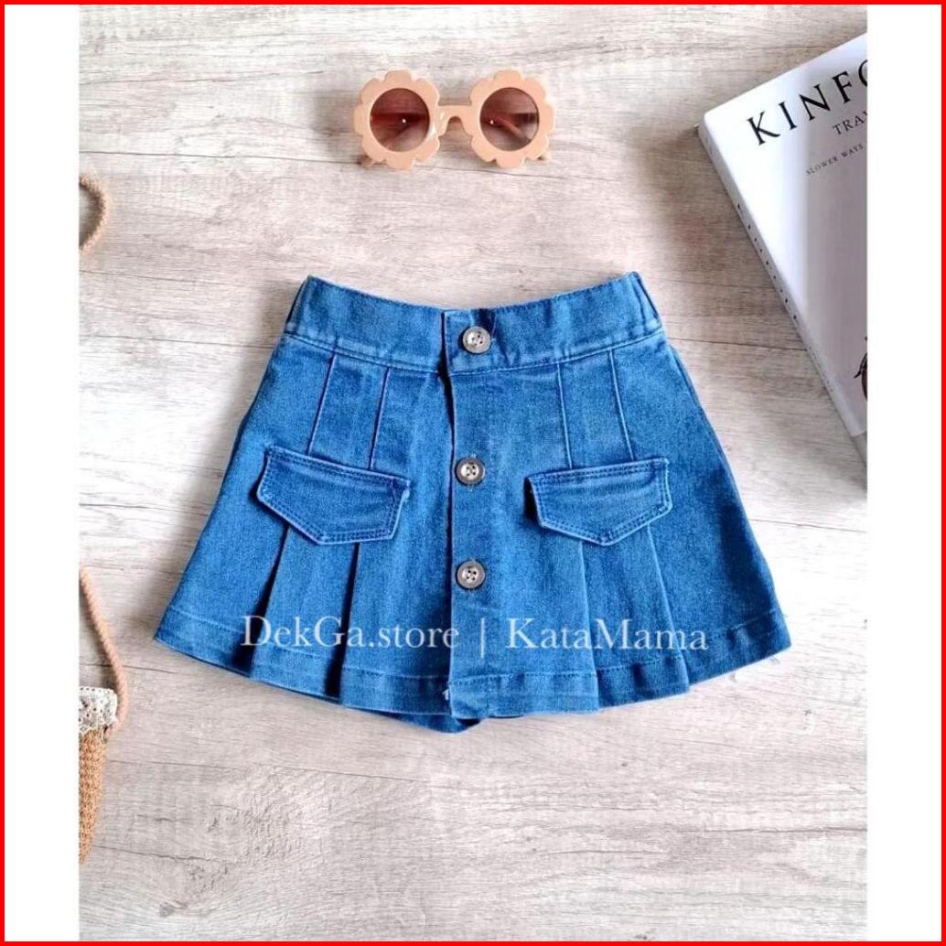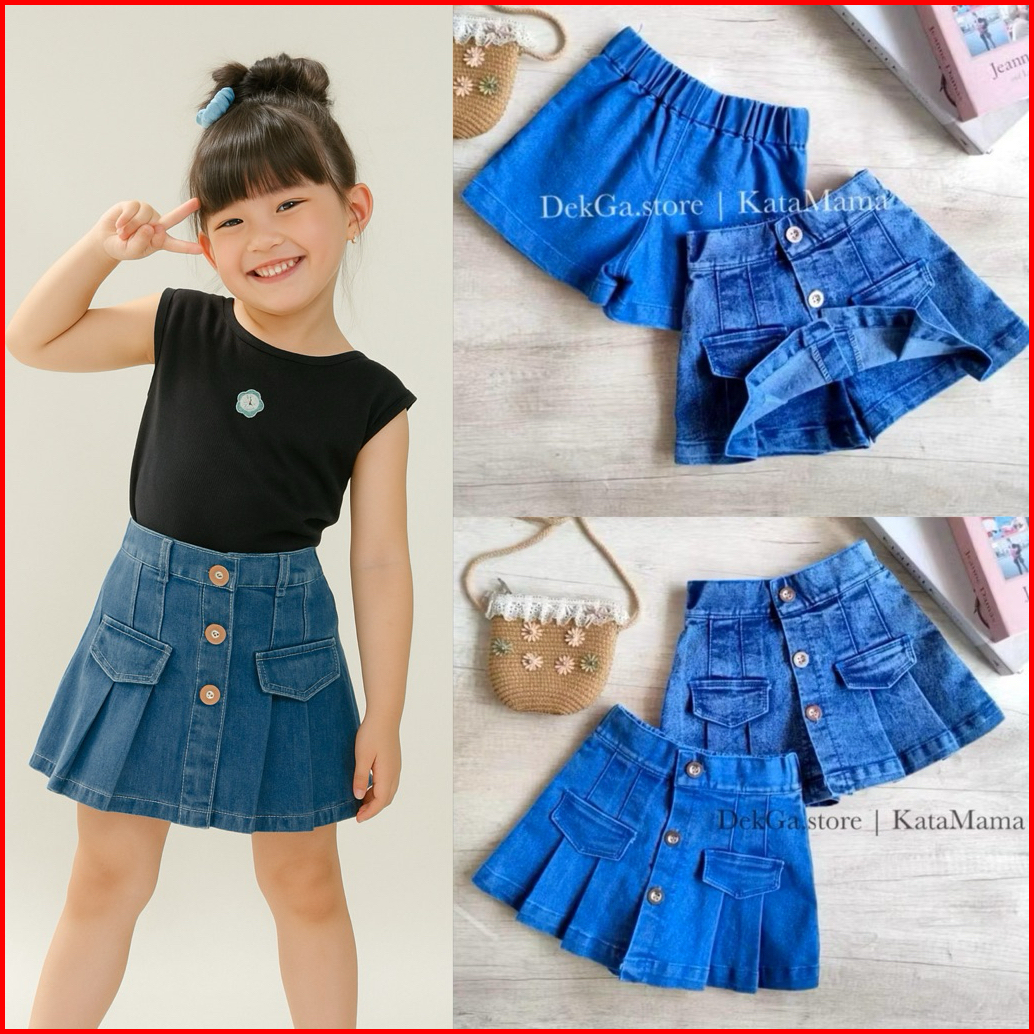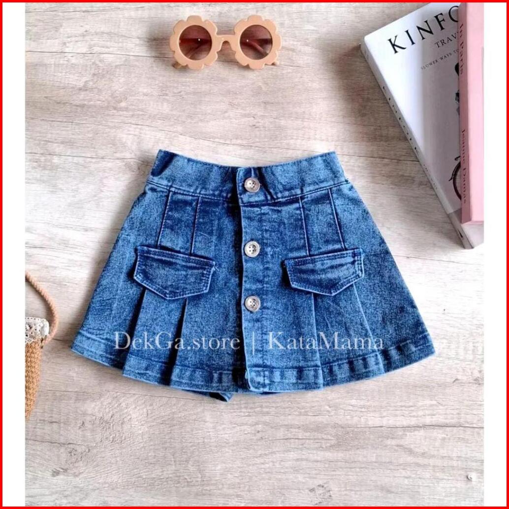 Rok Celana Bawahan 2in1 Anak Perempuan Saku Kancing 9bulan - 12tahun Mini Rok Jeans Premium