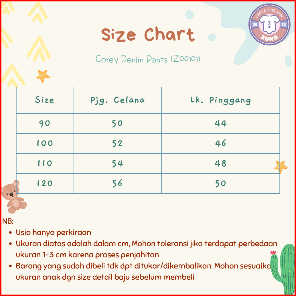 Z0101 Zuno Kids Corey Denim Pants Pakaian Celana Denim Jeans Anak Cewek Toddler Korean Style Impor Cantik Lucu
