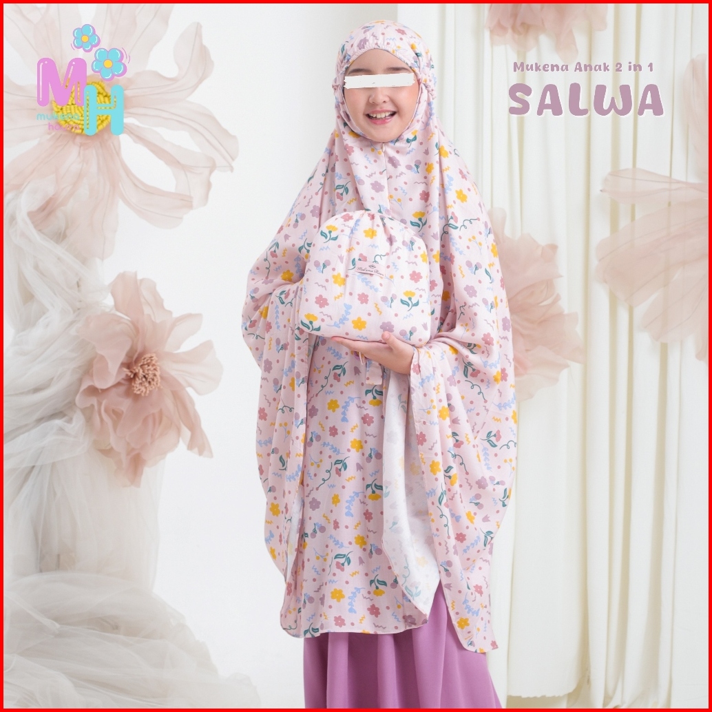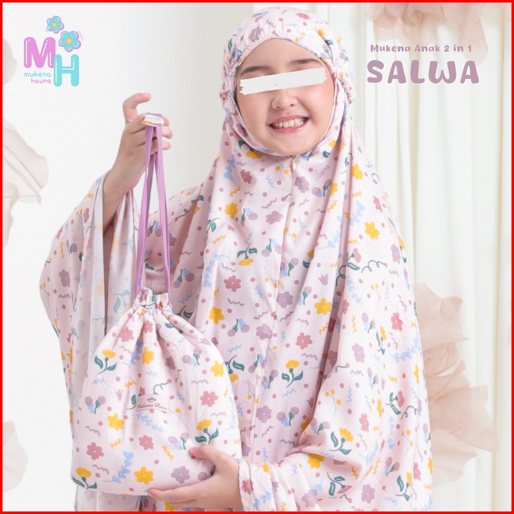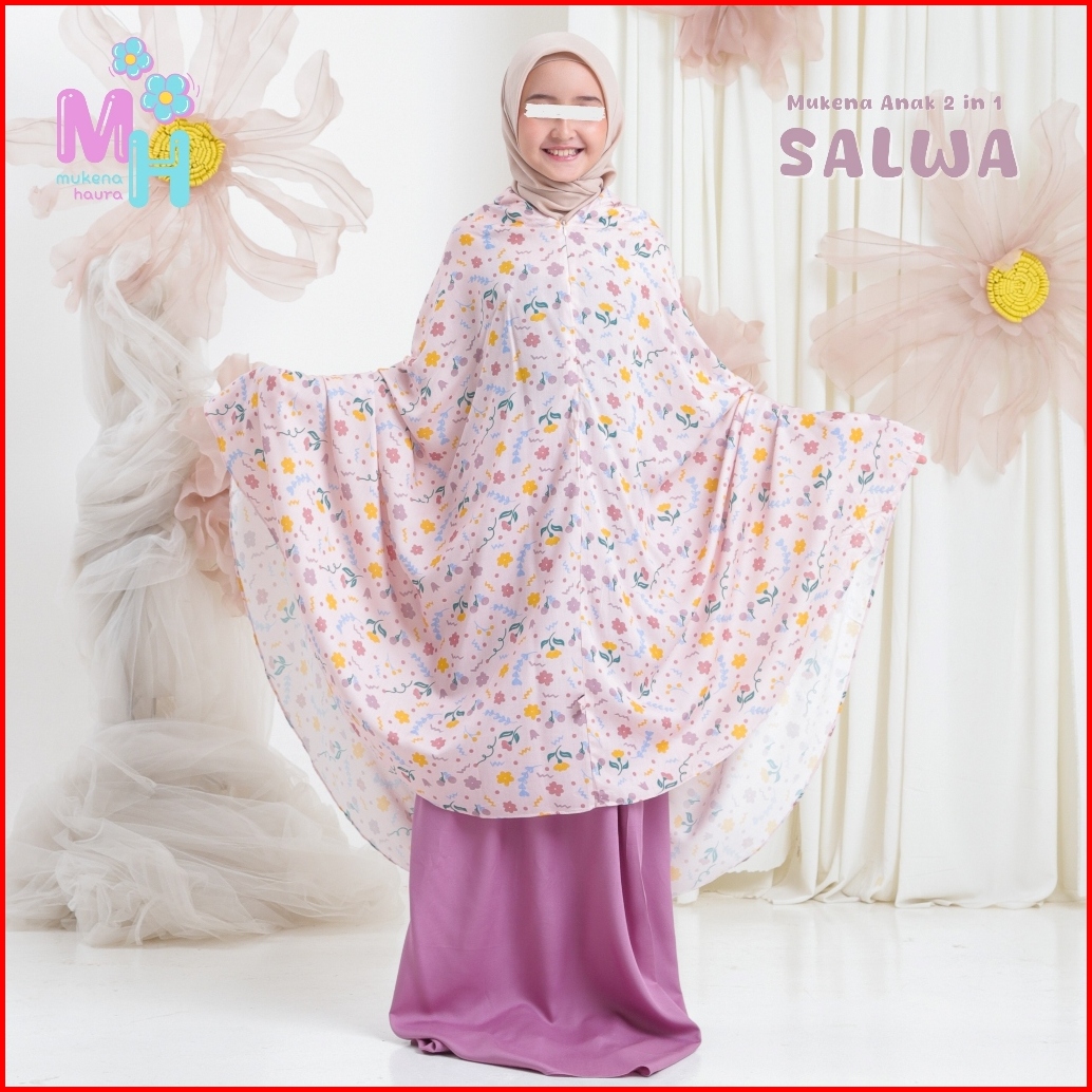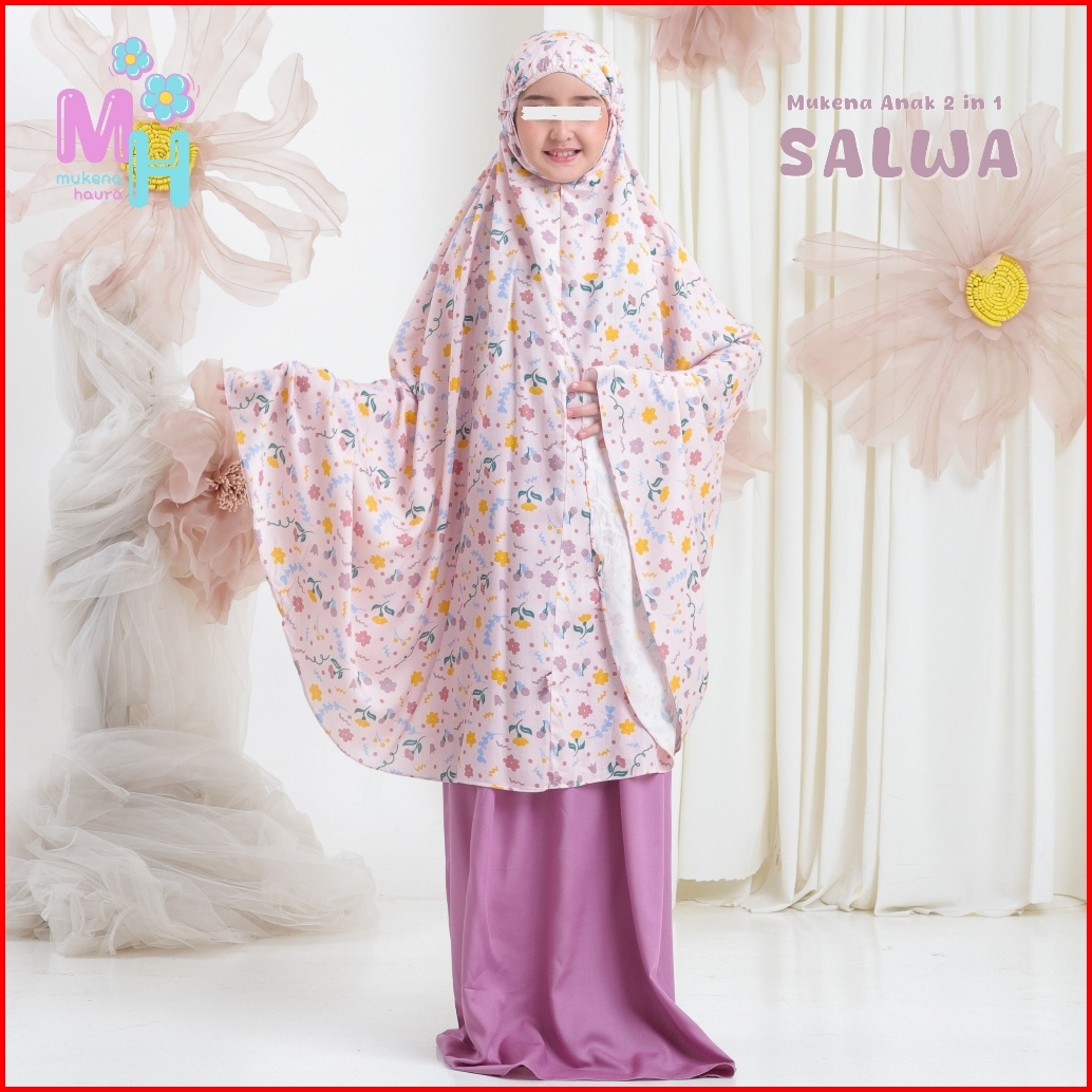 Mukena Anak Rayon Motif Salwa 2 In 1 Resleting Dagu