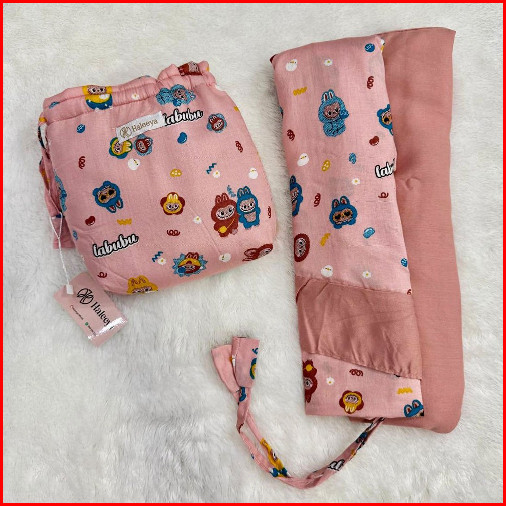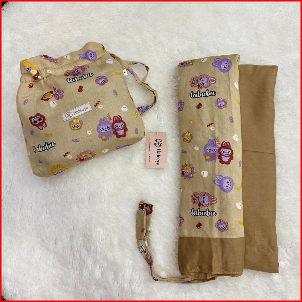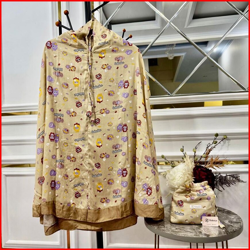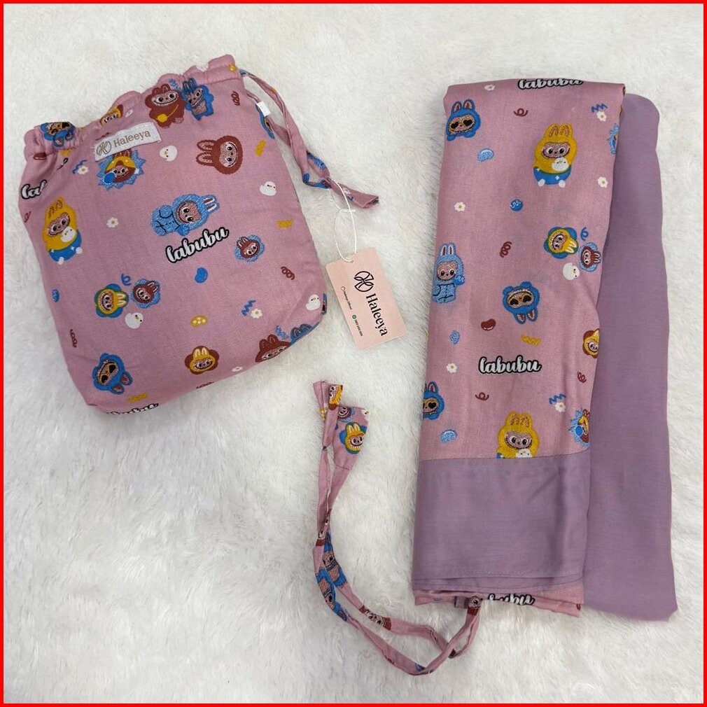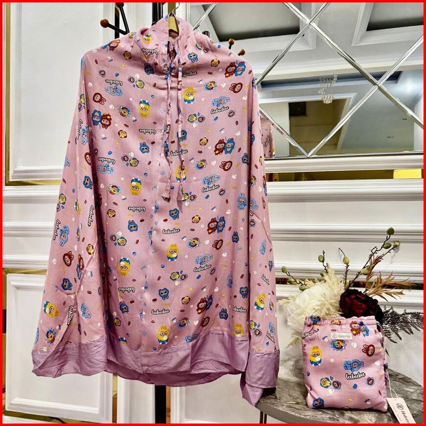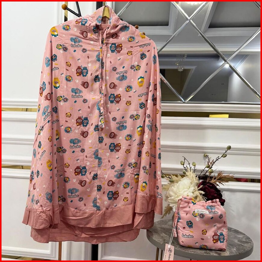 Mukena Resleting Anak Perempuan Usia 3-9 Th Rayon Motif Labubu Kombinasi