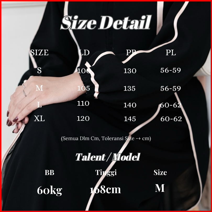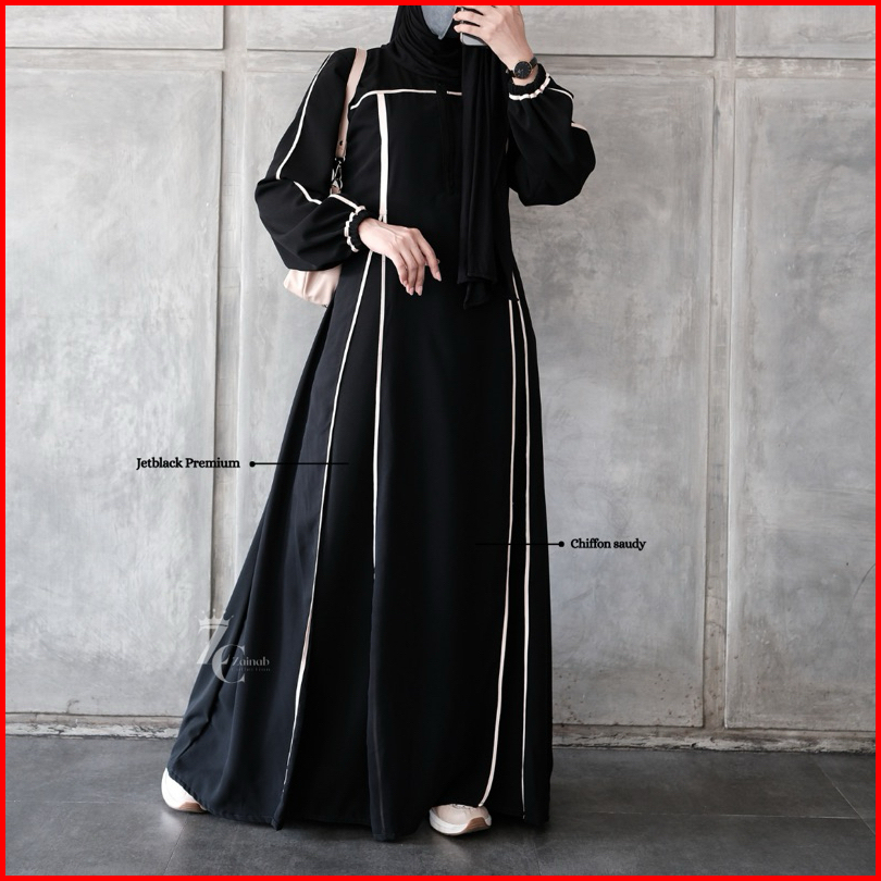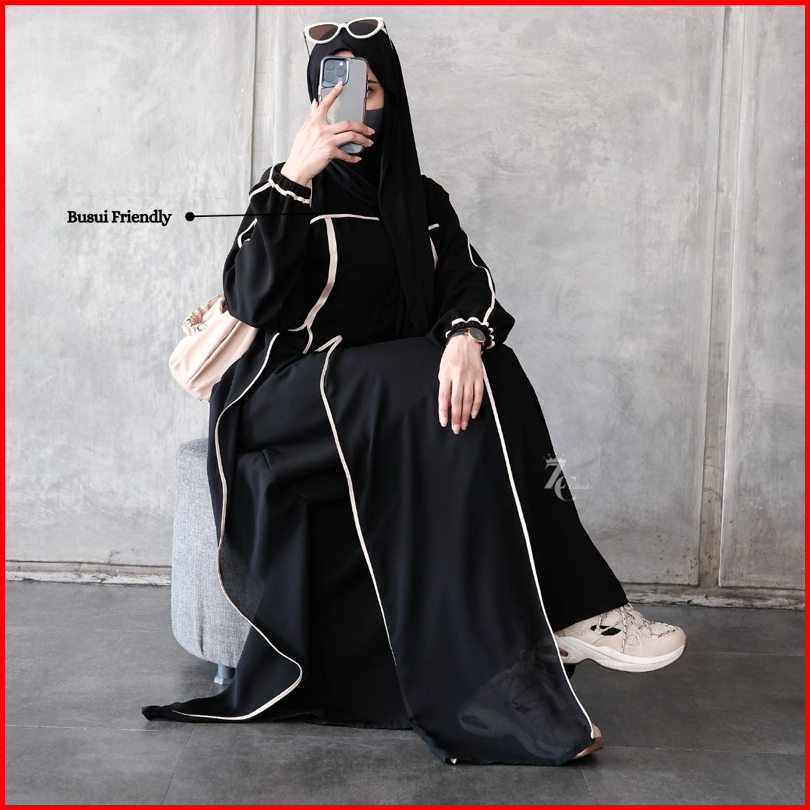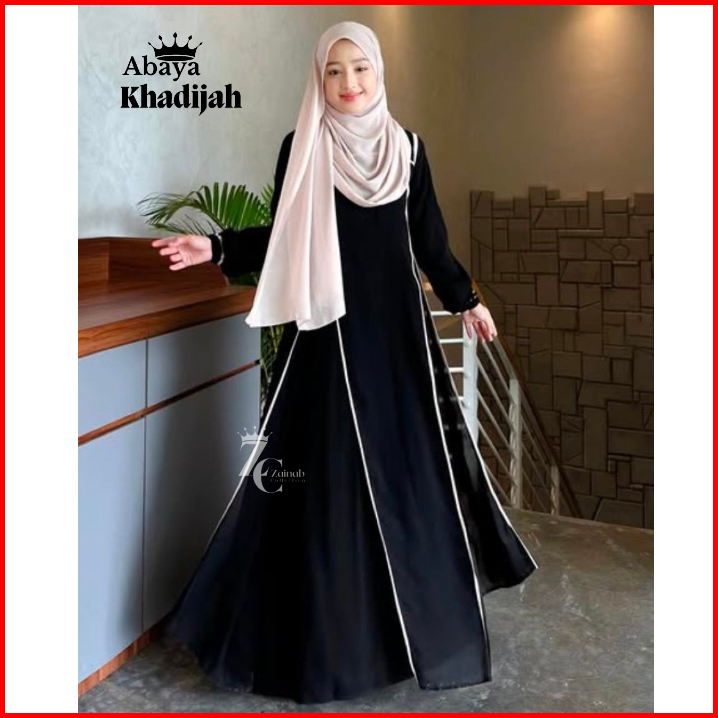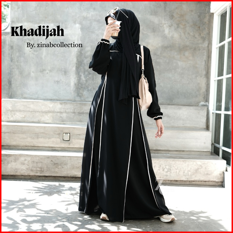 New Abaya Khadijah Hitam Turkey Gamis Syari Muslimah Bahan Jetblack Hitam Kombinasi List Pita.