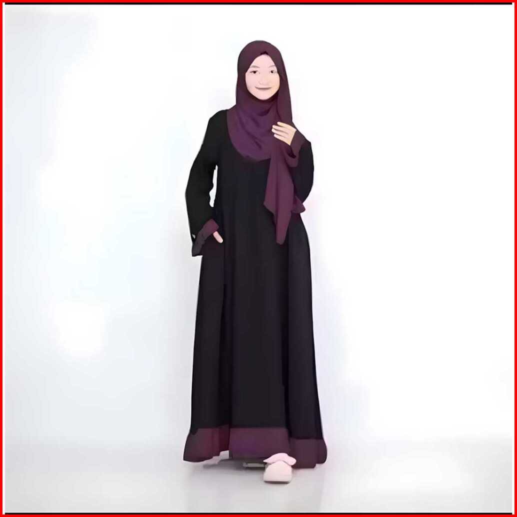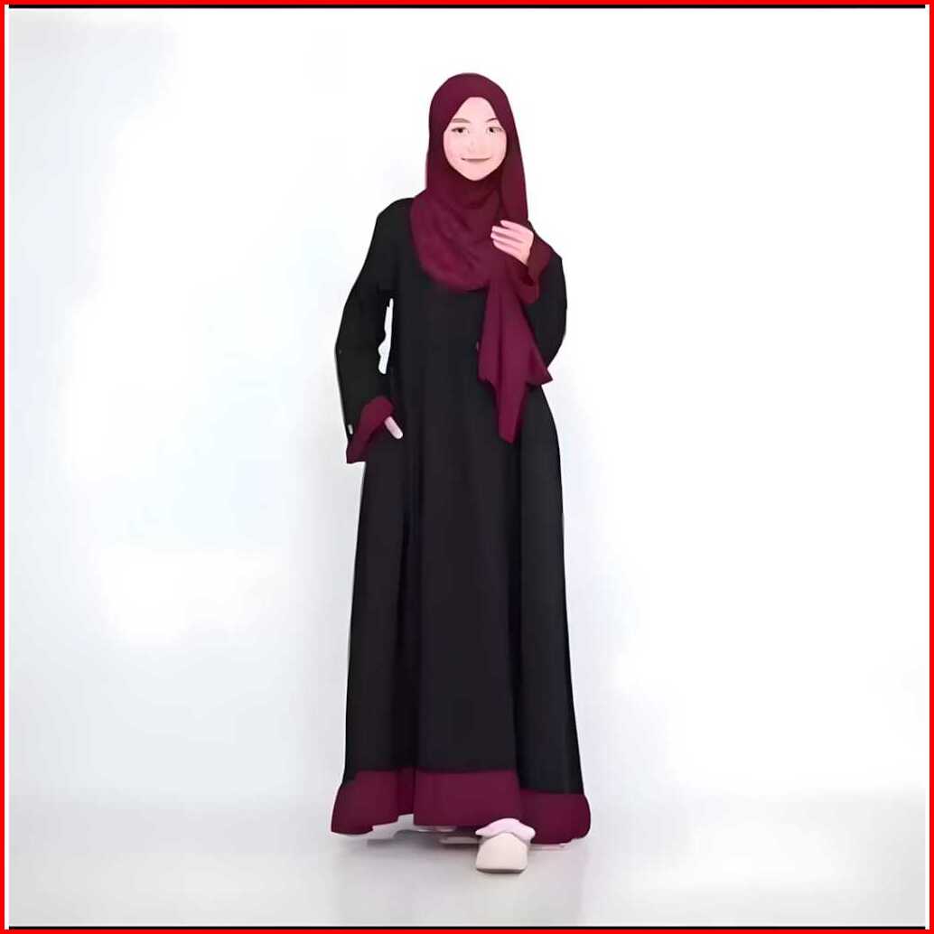 Gamis Abaya Hitam Anak Perempuan 11 12 13 14 15 16 17 Tahun Liyana Syar I Set Pashmina Bahan Ceruty Babydoll Full Furing