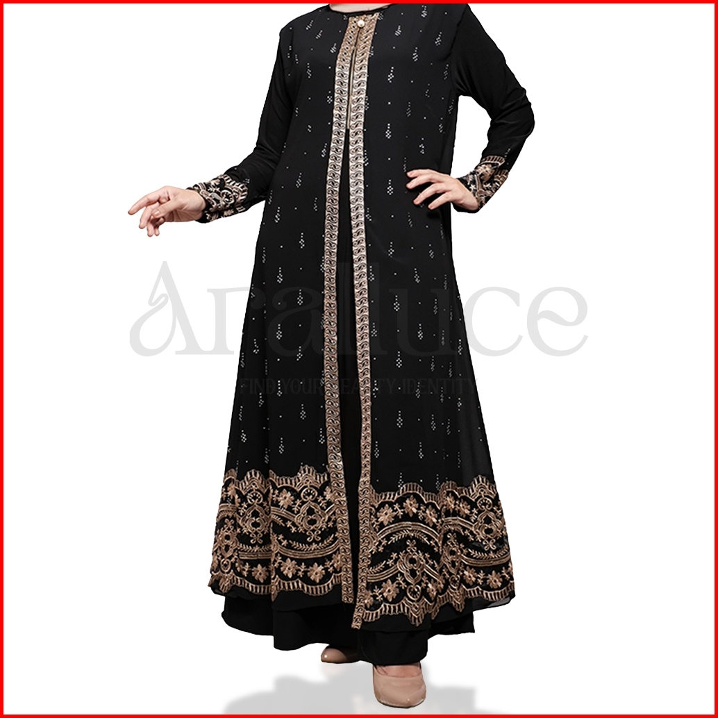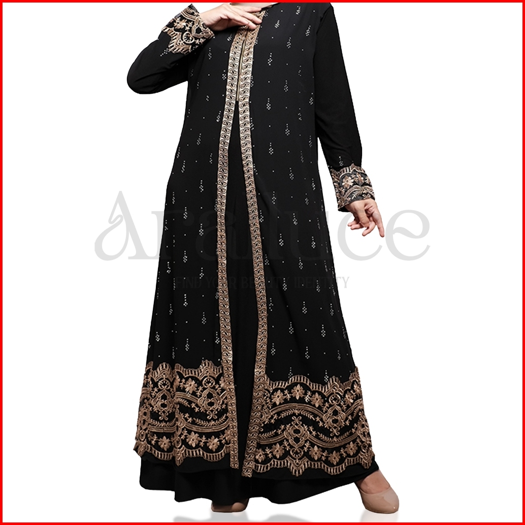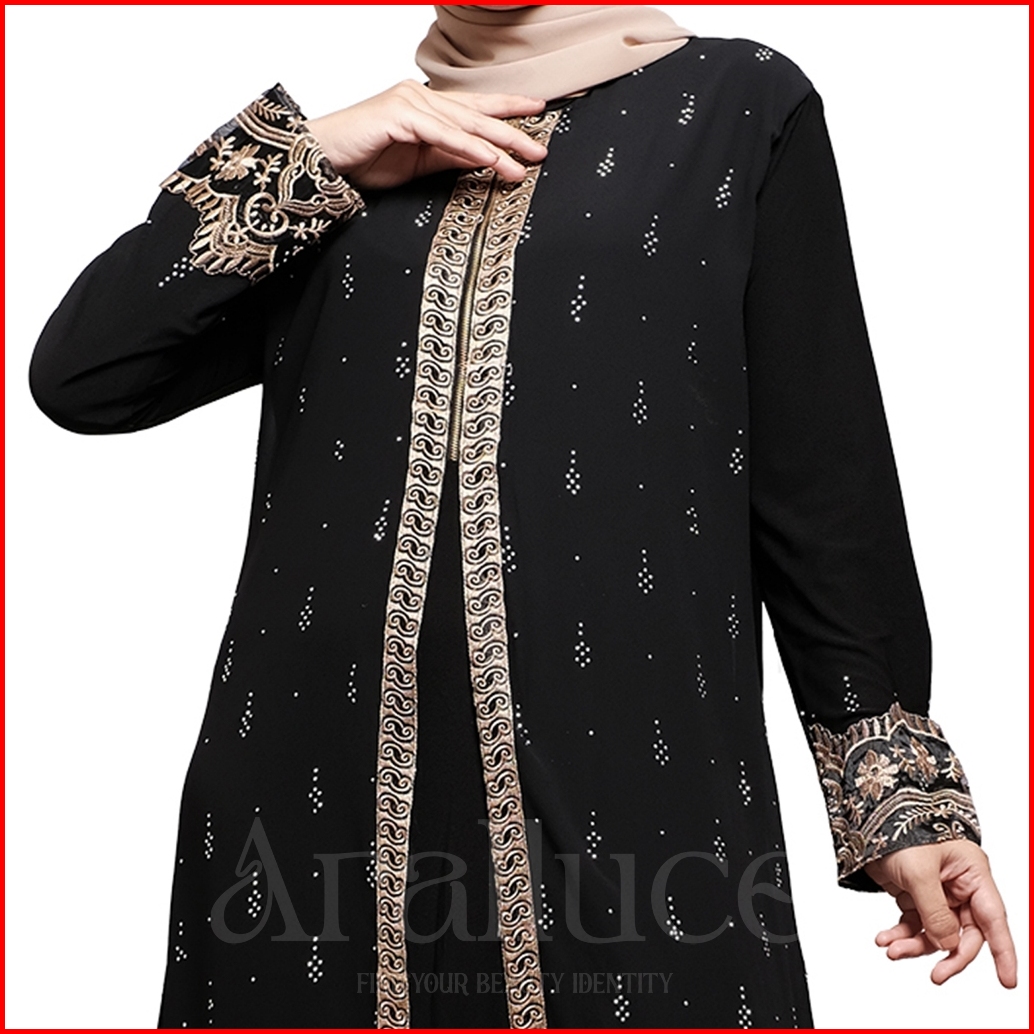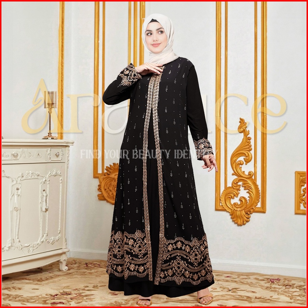 Aralluce Gamis Abaya Turkey Turki Bordir Keliling Arl 310 - Abaya Dubai Hitam Mewah Elegan Terbaru