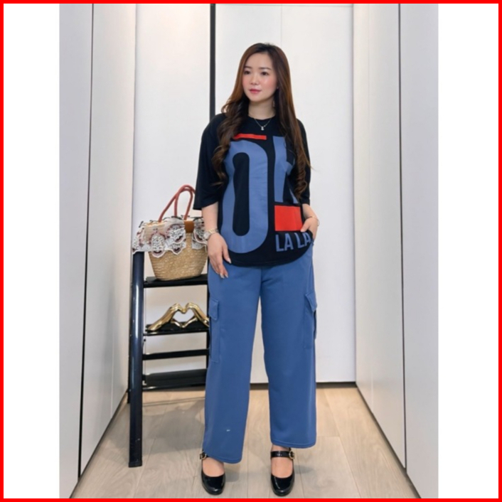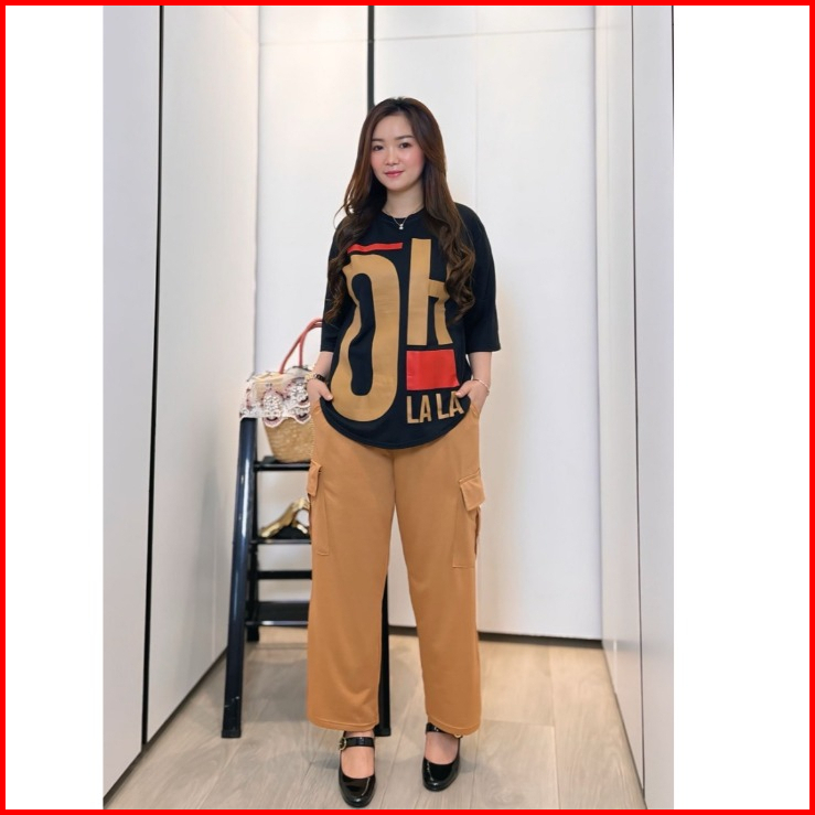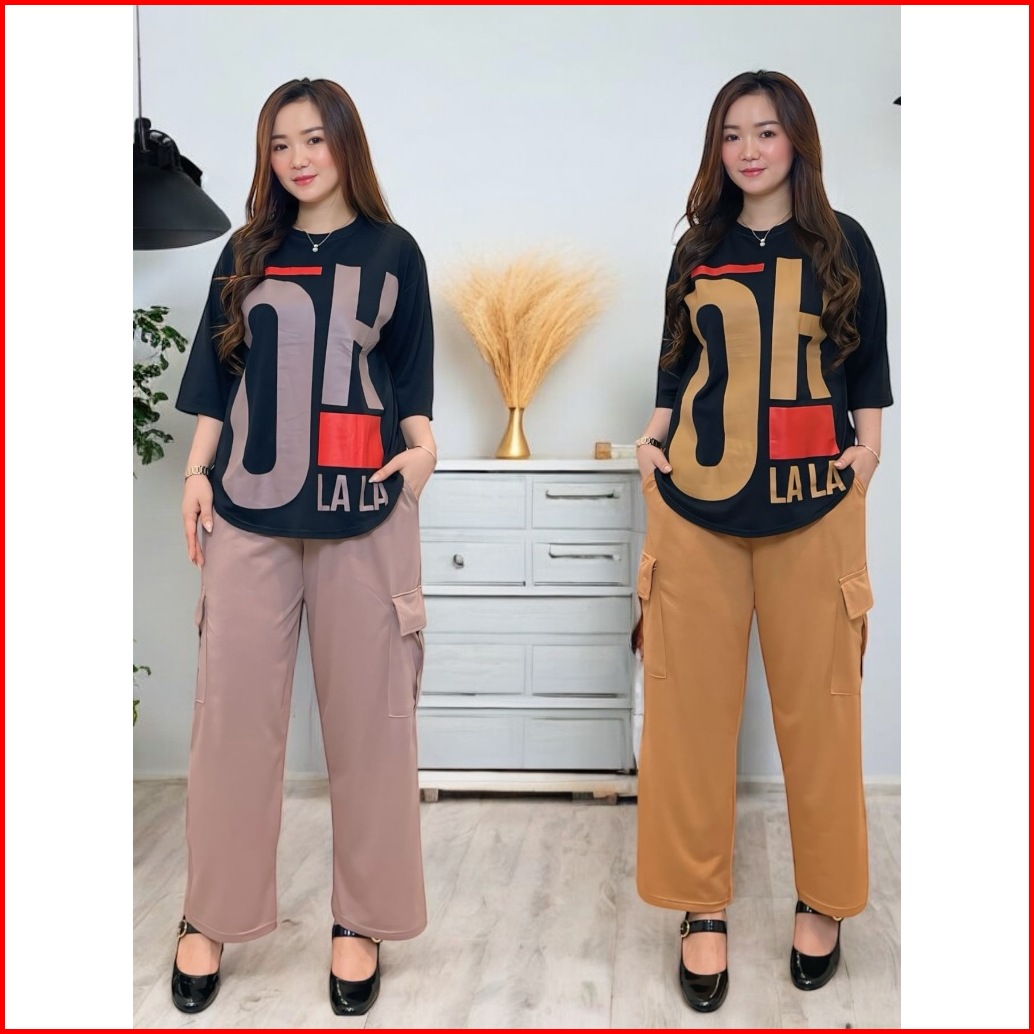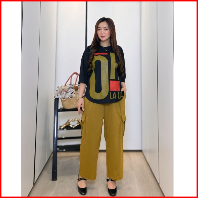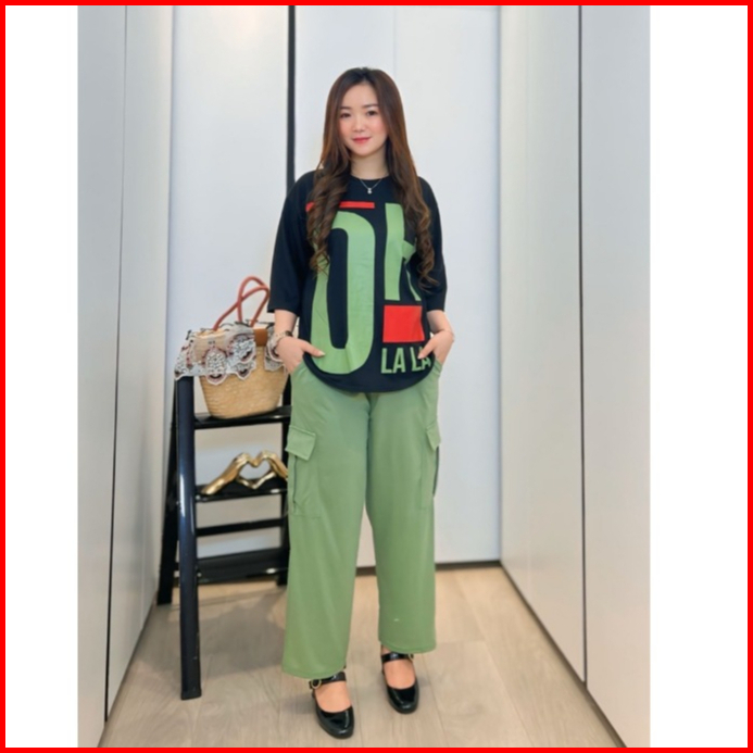 Setelan Cargo Oversize Ld 120 Cm Setelan Wanita Atasan Lengan 3 4 Dan Celana Cargo Setelan Oh Lala Fashion Muslim Sr5370