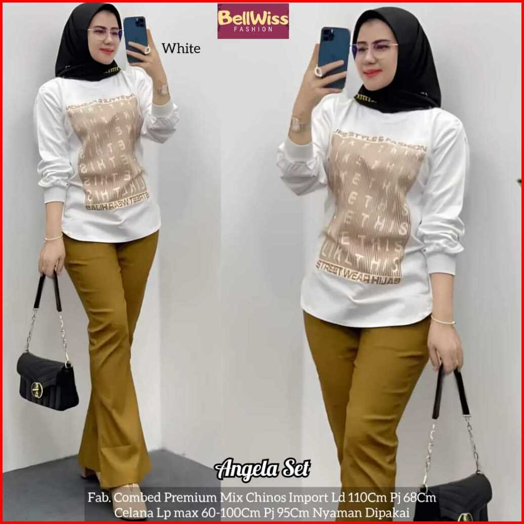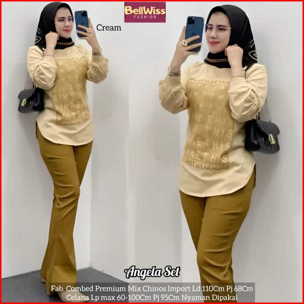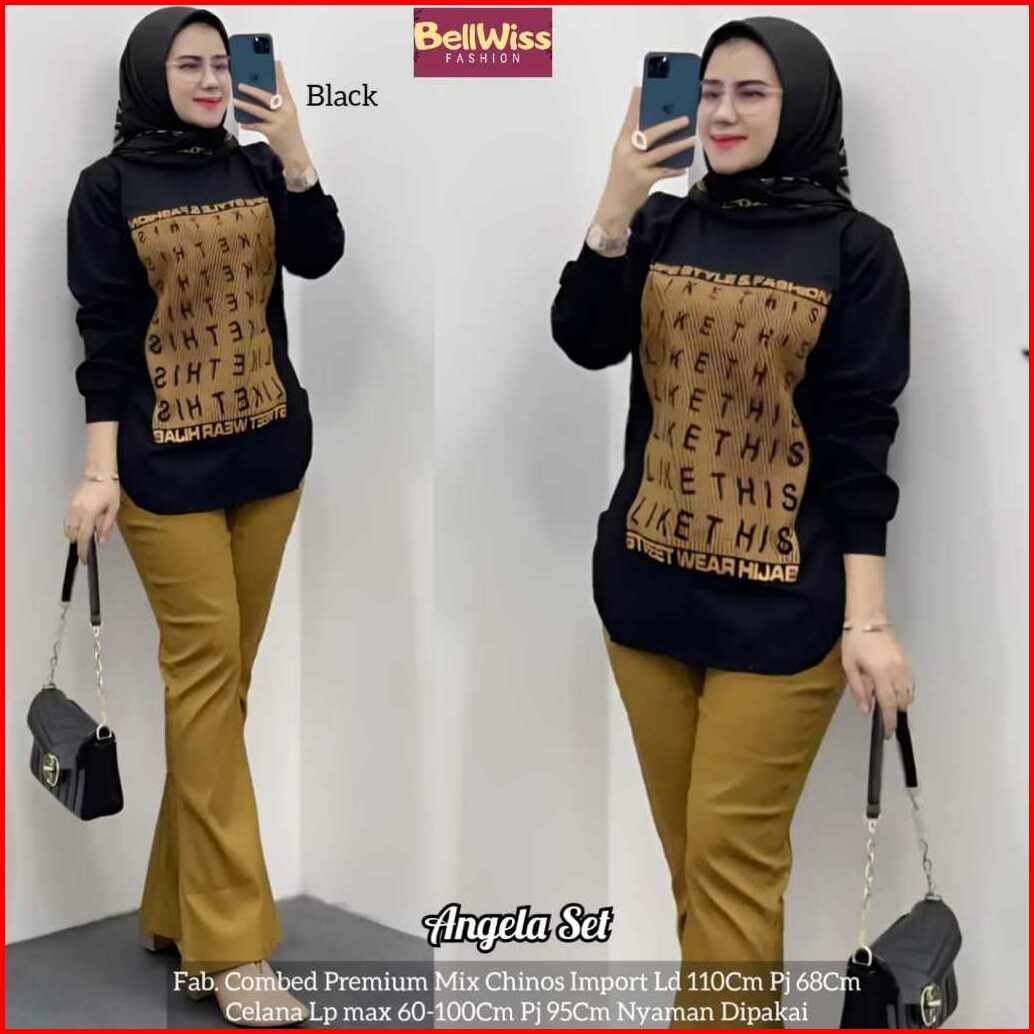 Angela Set By Bellwiss Setelan Wanita Atasna Mix Celana Bahan Combed Mix Chinos Best Seller