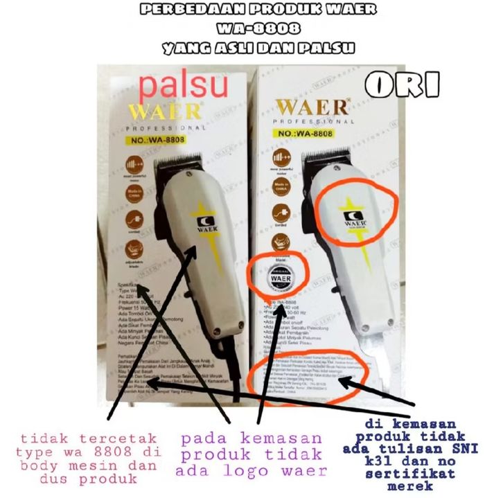Alat Cukur Rambut Elektrik WAER WA-8808 / Mesin Cukur Rambut Listrik / Hair Clipper Proffessional