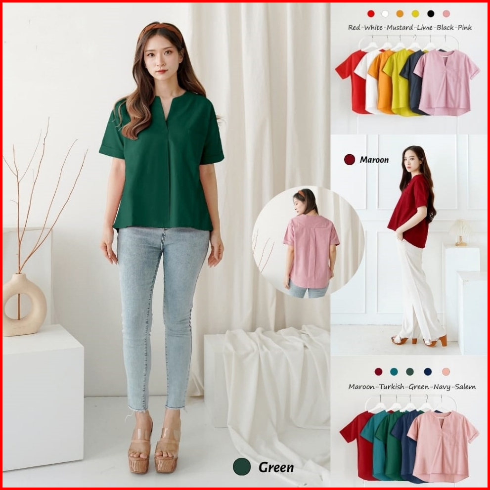 Blouse Cewek Cotton Basic Polos Blus Katun Uniqlo Kerah Unik Baju Terlaris Atasan Wanita Murah Tbsa