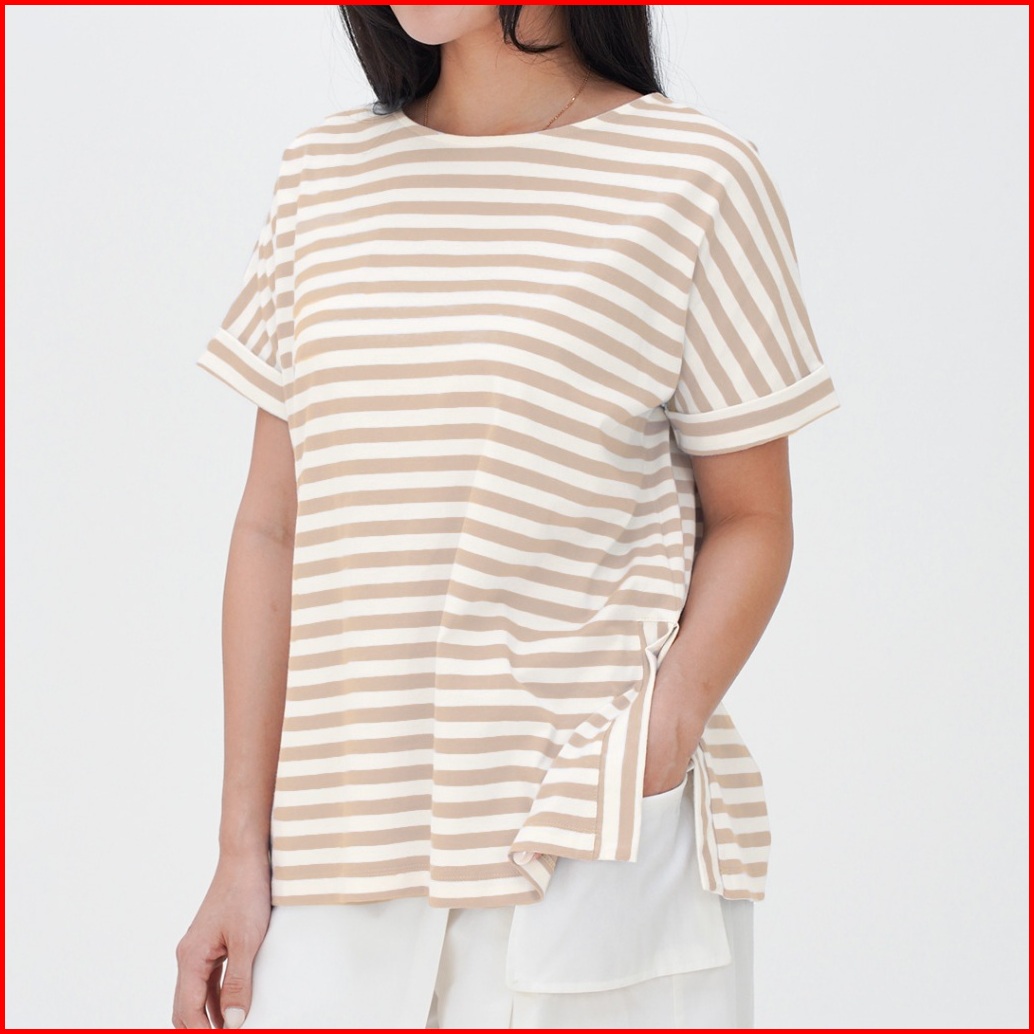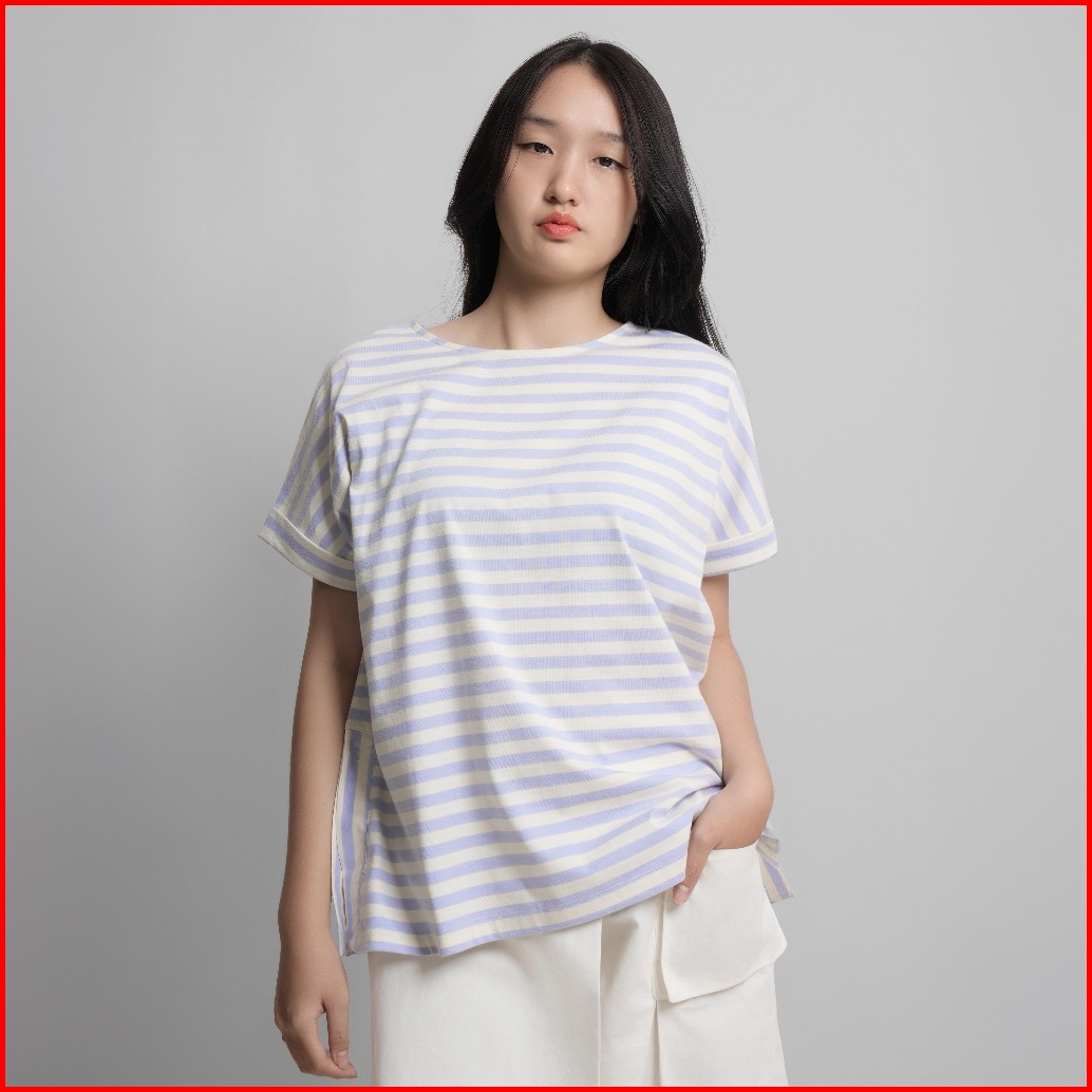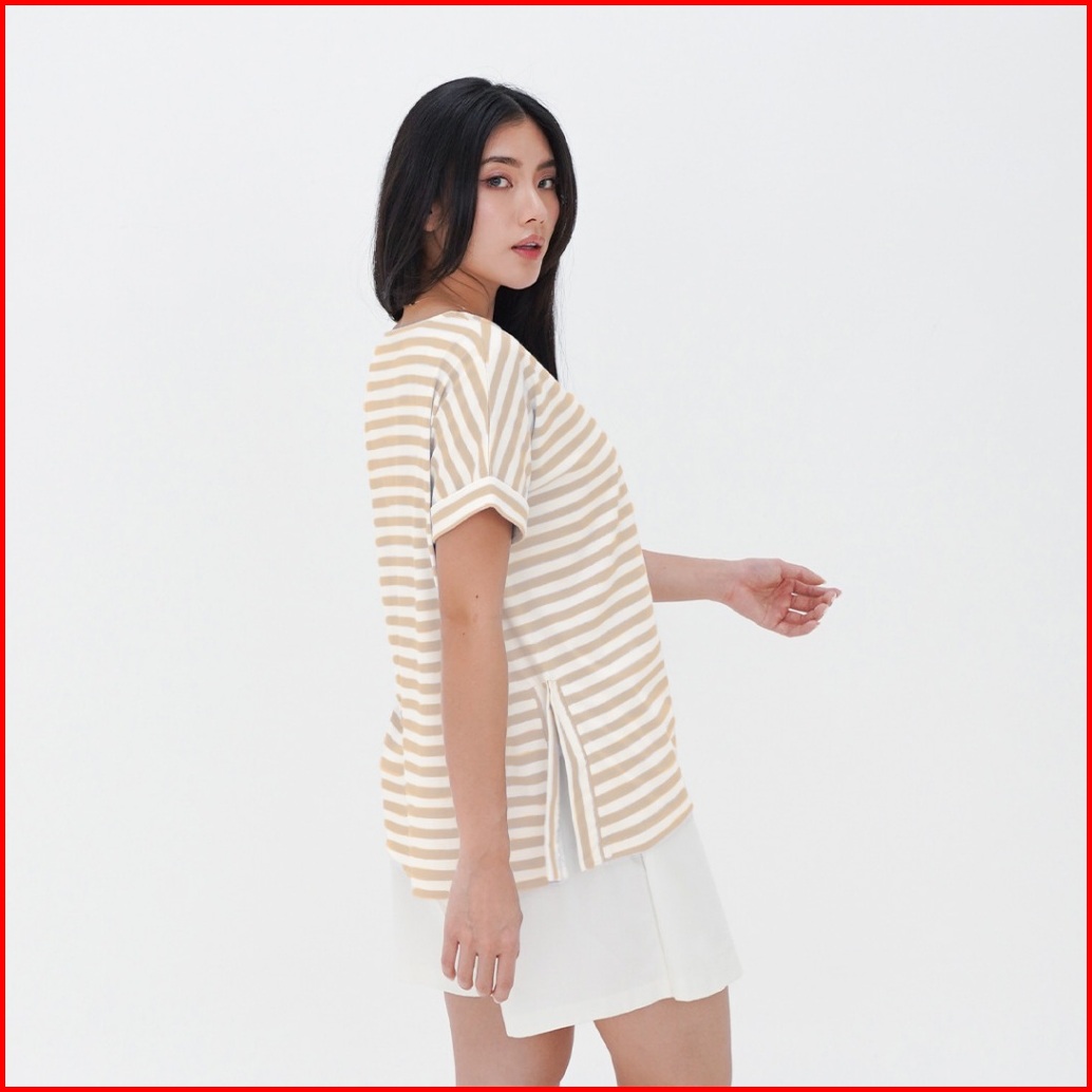 Ziandglo Lola Stripe T-shirt Atasan Kaos Katun Garis-garis Wanita
