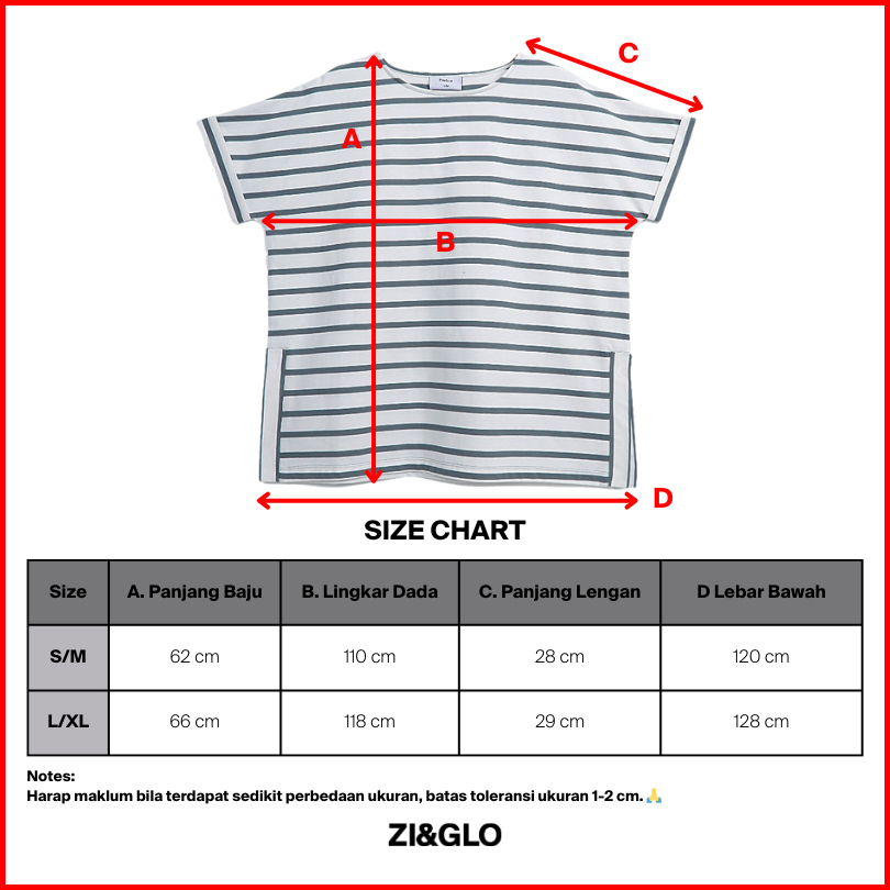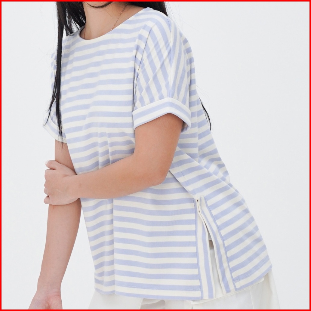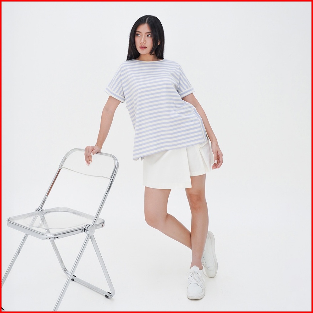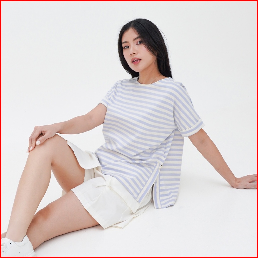Ziandglo Lola Stripe T-shirt Atasan Kaos Katun Garis-garis Wanita