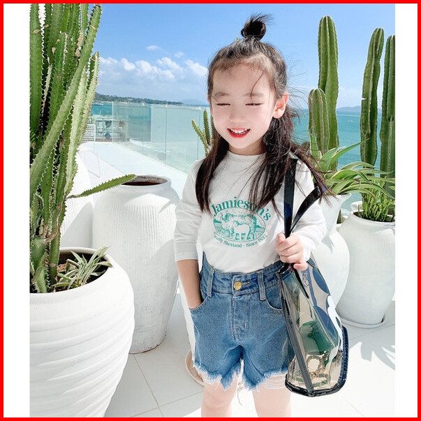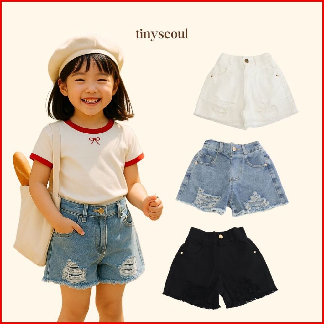 Tiny Seoul Celana Jeans Anak Perempuan - Jennie Ripped Jeans - Celana Anak Cewek Denim - Pendek Anak Denim - Celana Jean
