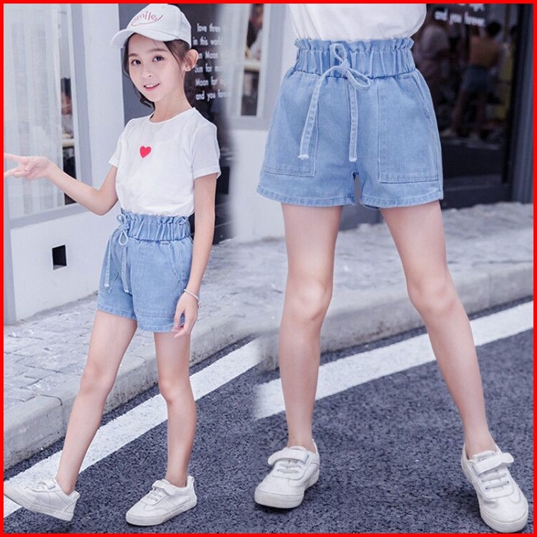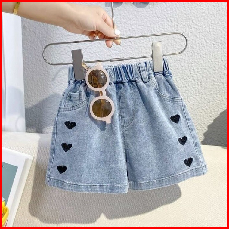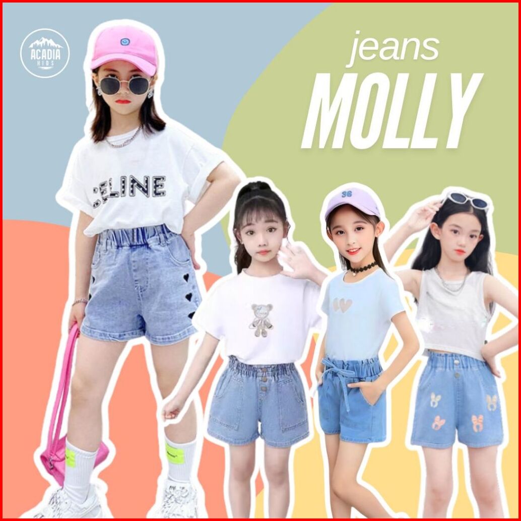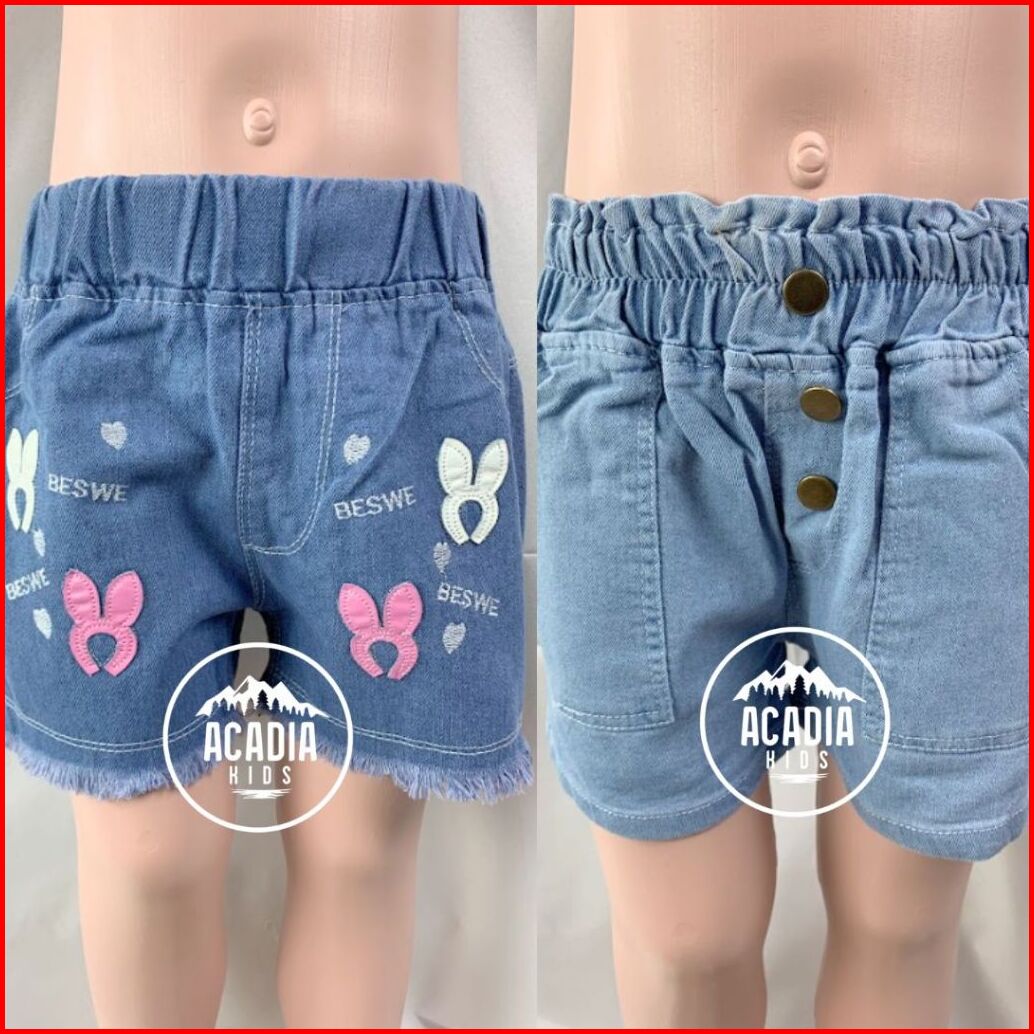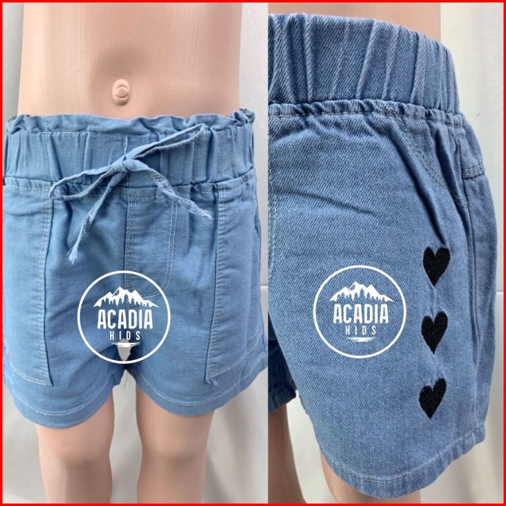 Acadiakids - Celana Pendek Anak Perempuan 2-11 Tahun Bawahan Jeans Hiasan Kancing Pita Gambar Bordir Molly Premium Terba