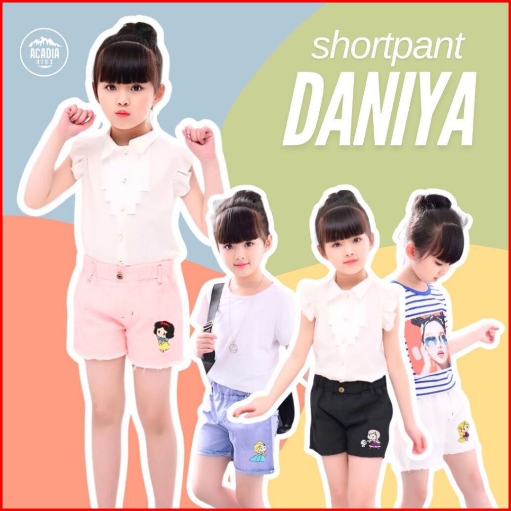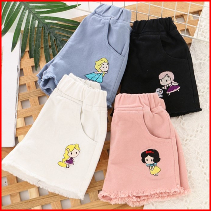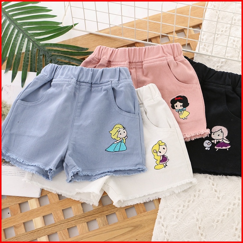 Acadiakids - Celana Pendek Anak Perempuan 2-10 Tahun Soft Jeans Motif Bordir Disney Princess Frozen Snow White Daniya Pr