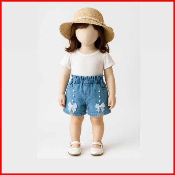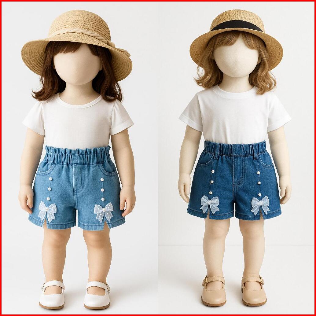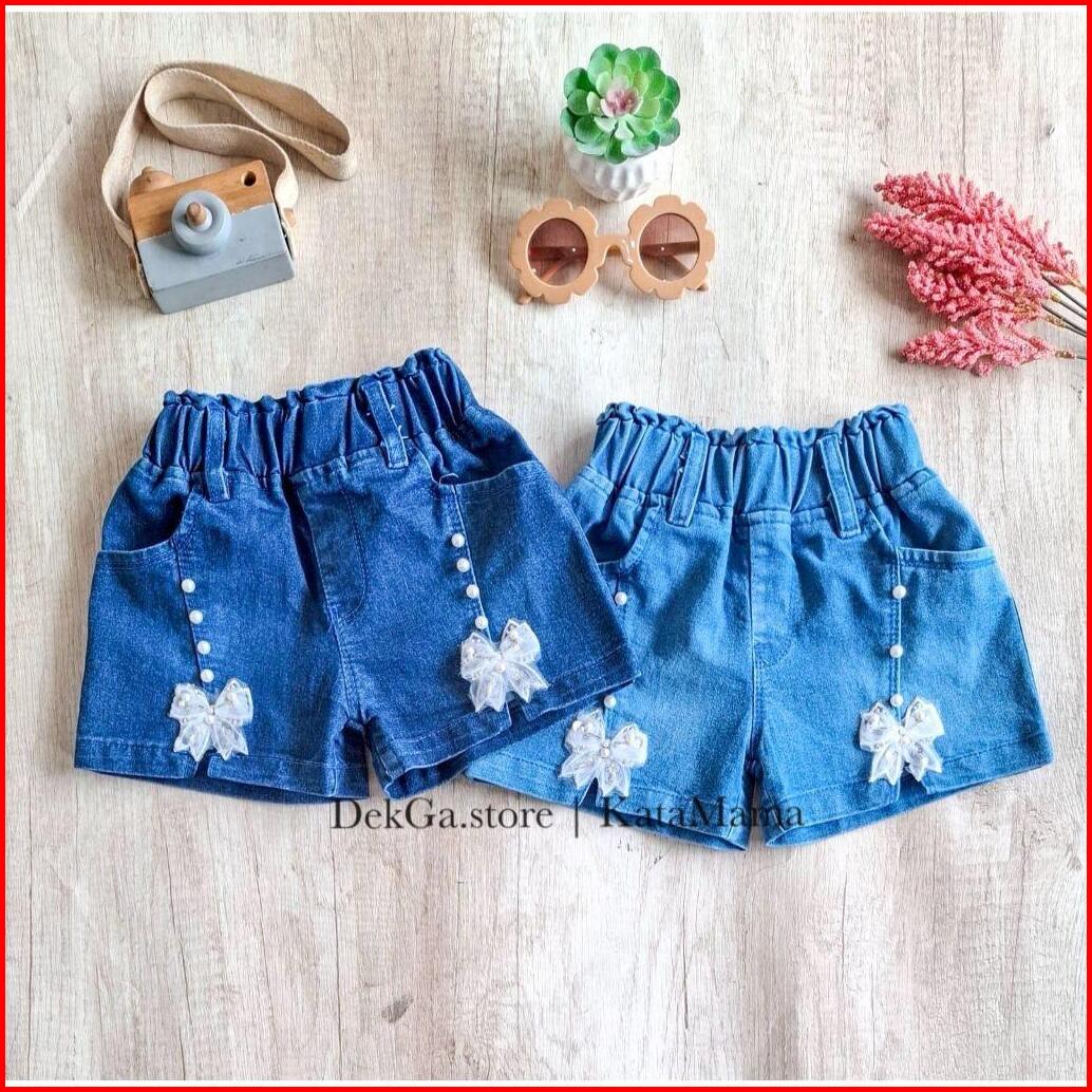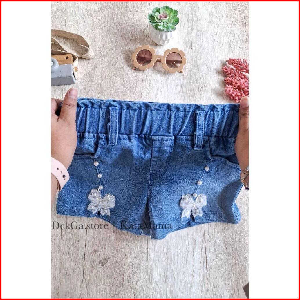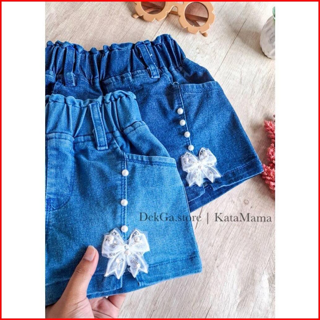 Celana Pendek Anak Perempuan Korean Style Usia 2-12tahun Hotpant Jeans Anak Mutiara Pita