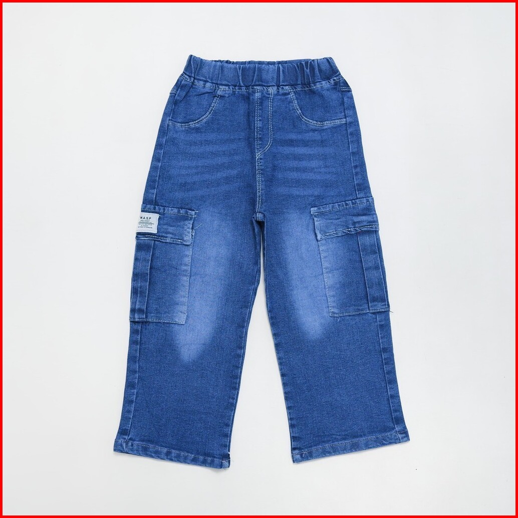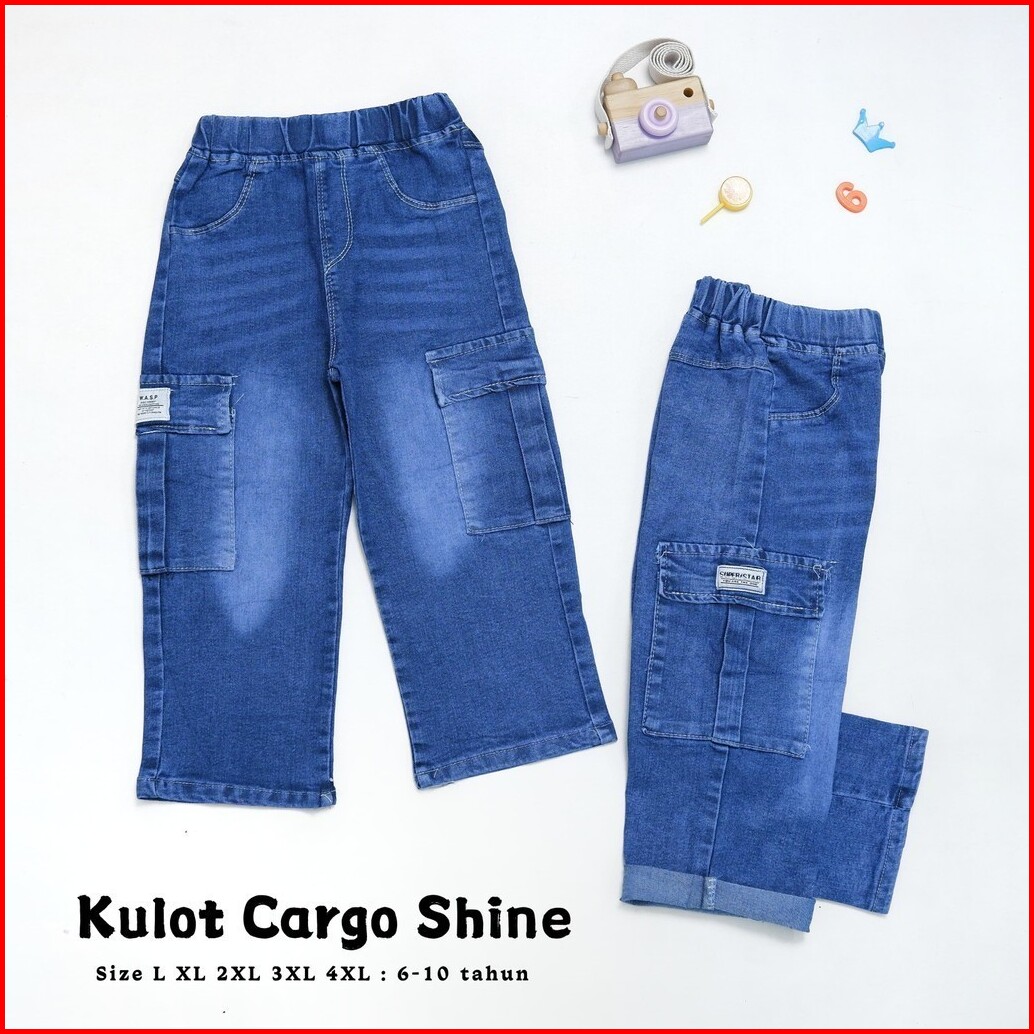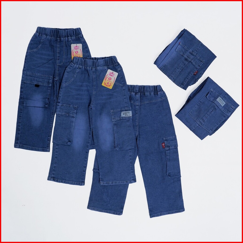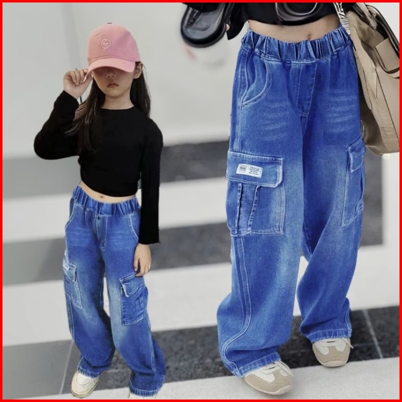 Celana Panjang Kulot Jeans Import Saku Cargo Anak Perempuan Cewek Jins Denim Skena Gombrong Usia 6 7 8 9 10 Tahun Shine
