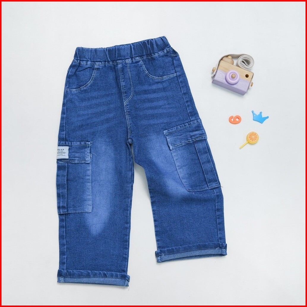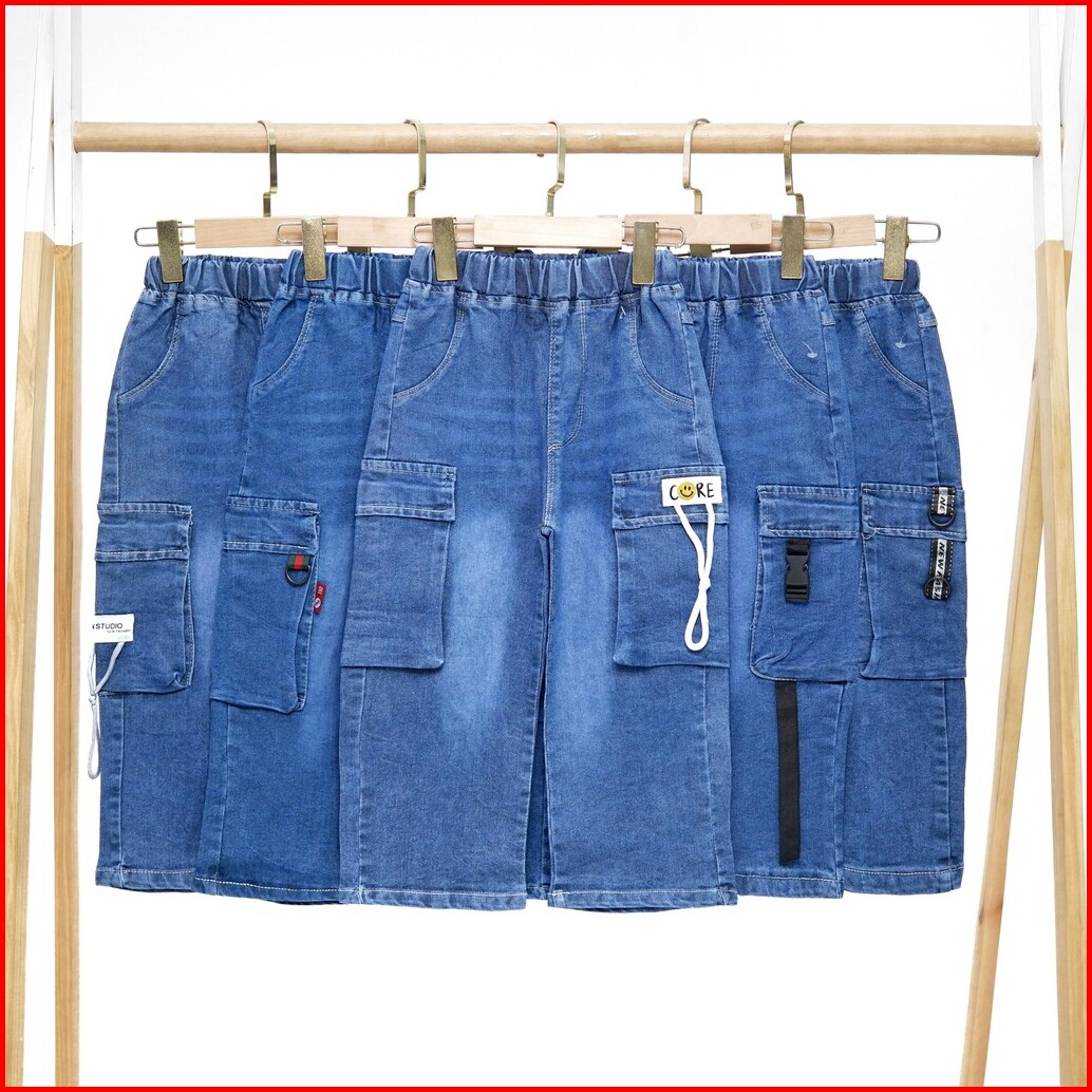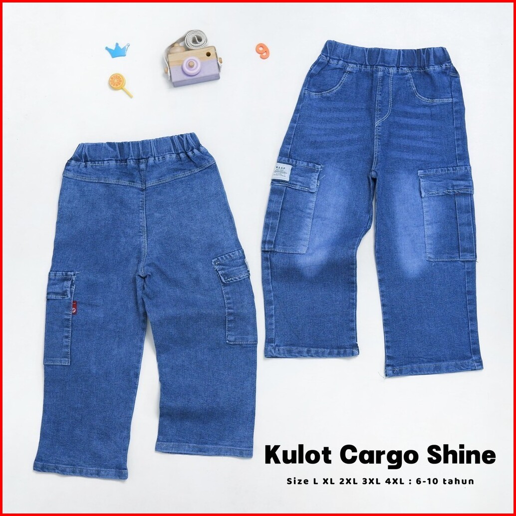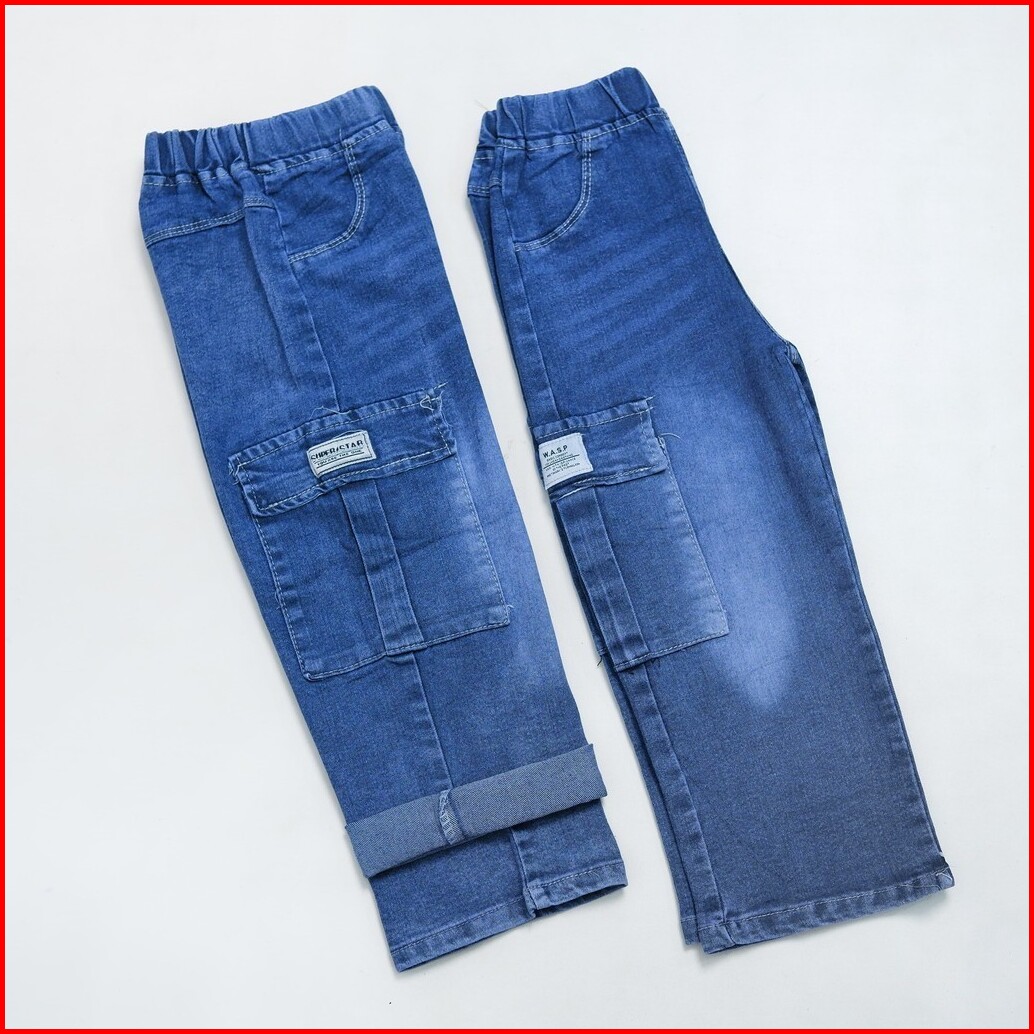 Celana Panjang Kulot Jeans Import Saku Cargo Anak Perempuan Cewek Jins Denim Skena Gombrong Usia 6 7 8 9 10 Tahun Shine