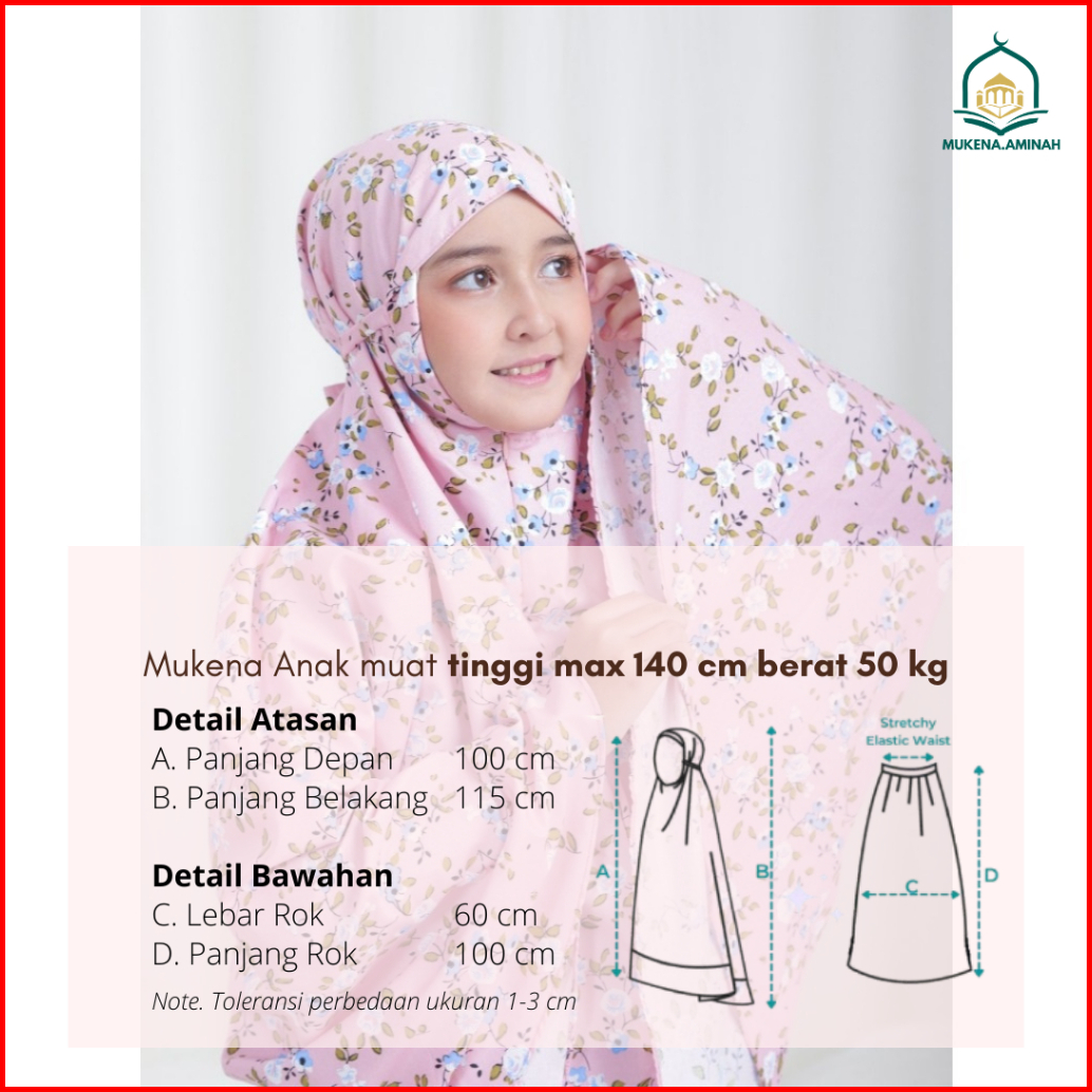 Mukena.aminah Mukena Anak Rasya Traveling 2 In 1 Katun Motif Cantik