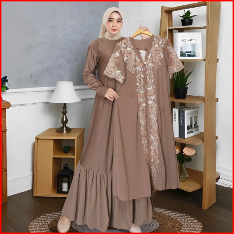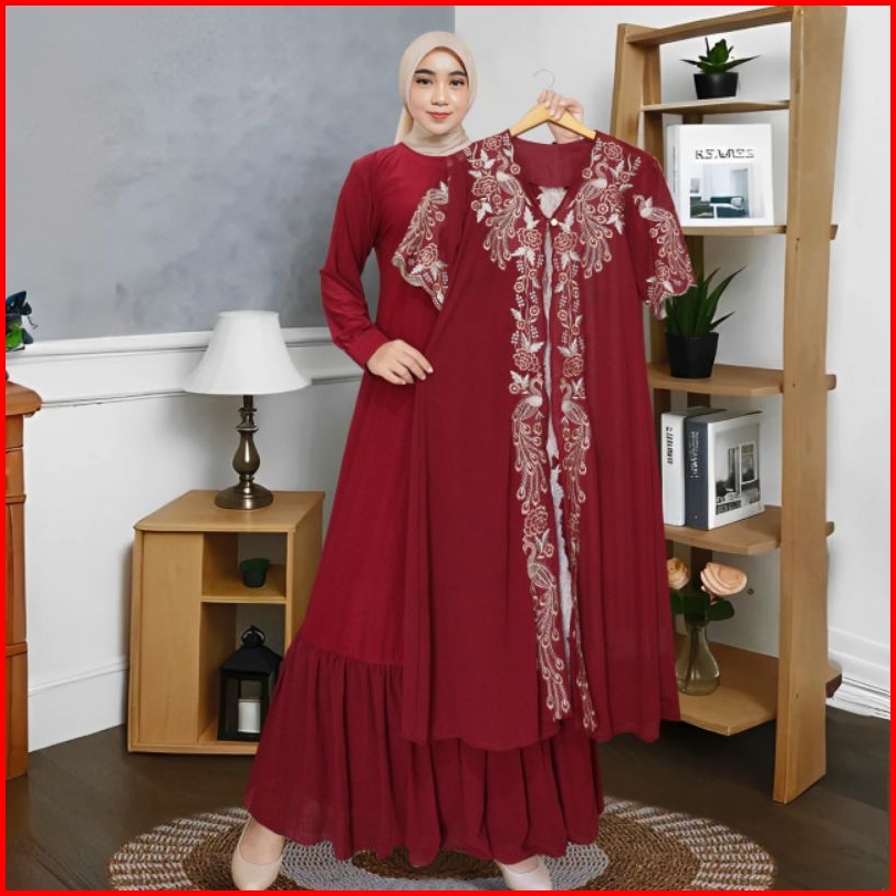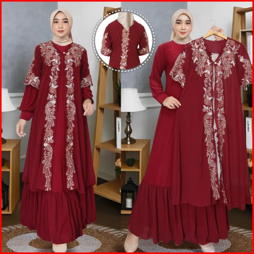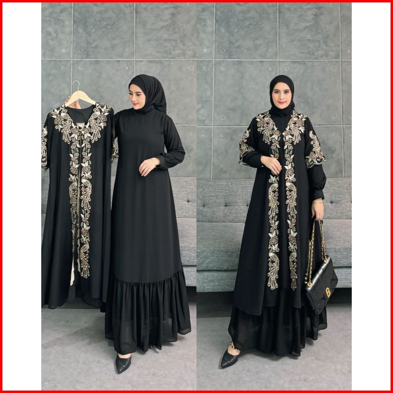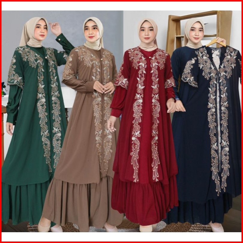 Gamis Abaya Turkey Terbaru Super Mewah Viral Realpict Outer Lepas Pasang Bordir Merak Jersey Premium Full Ceruty Baby Do