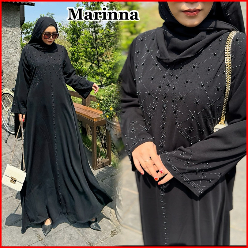 Abaya Hitam Mutiara Gamis Turki Elegant Abaya Dubai Marinna Anggun Pesta Umroh By Bungashop Wanita Muslim Arab Mewah Dre