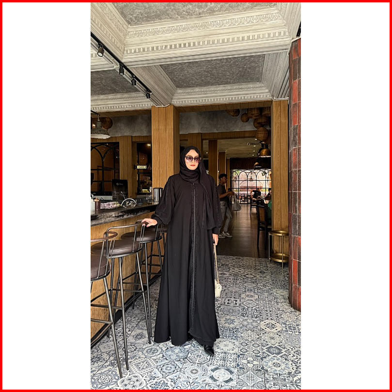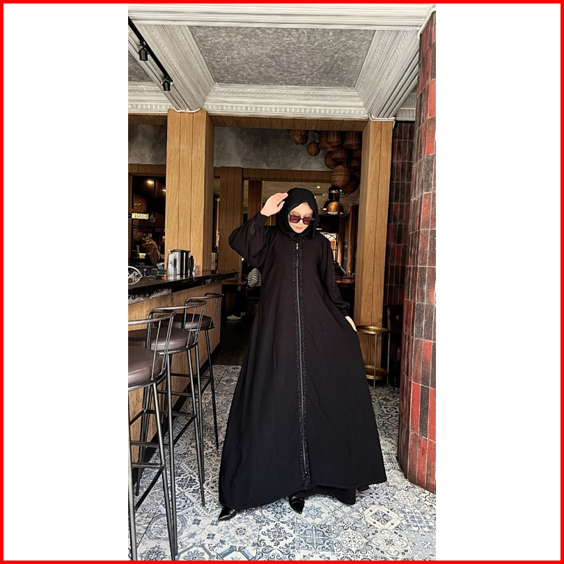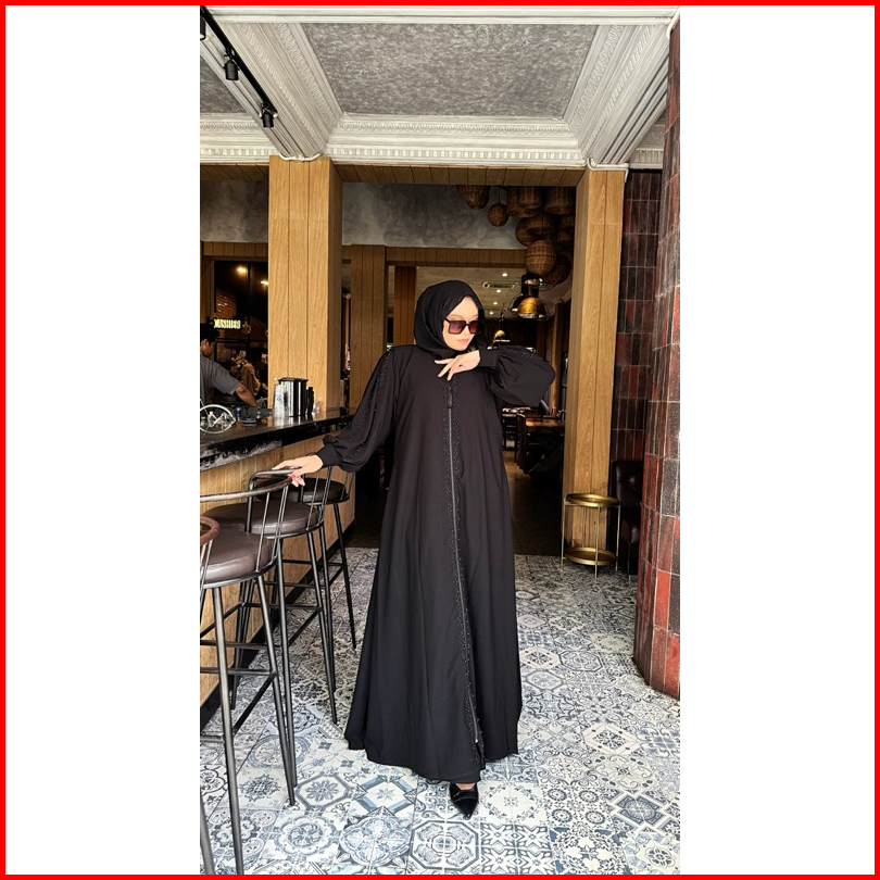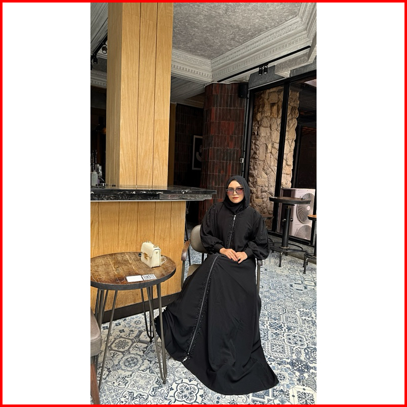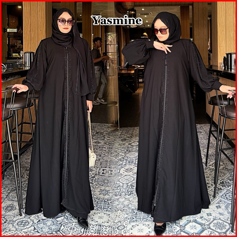 Abaya Hitam Gamis Wanita Terbaru Turkey Dubai Yasmine Dress Umroh Arab Muslim Bordir Turki Silver - Maxi Syari