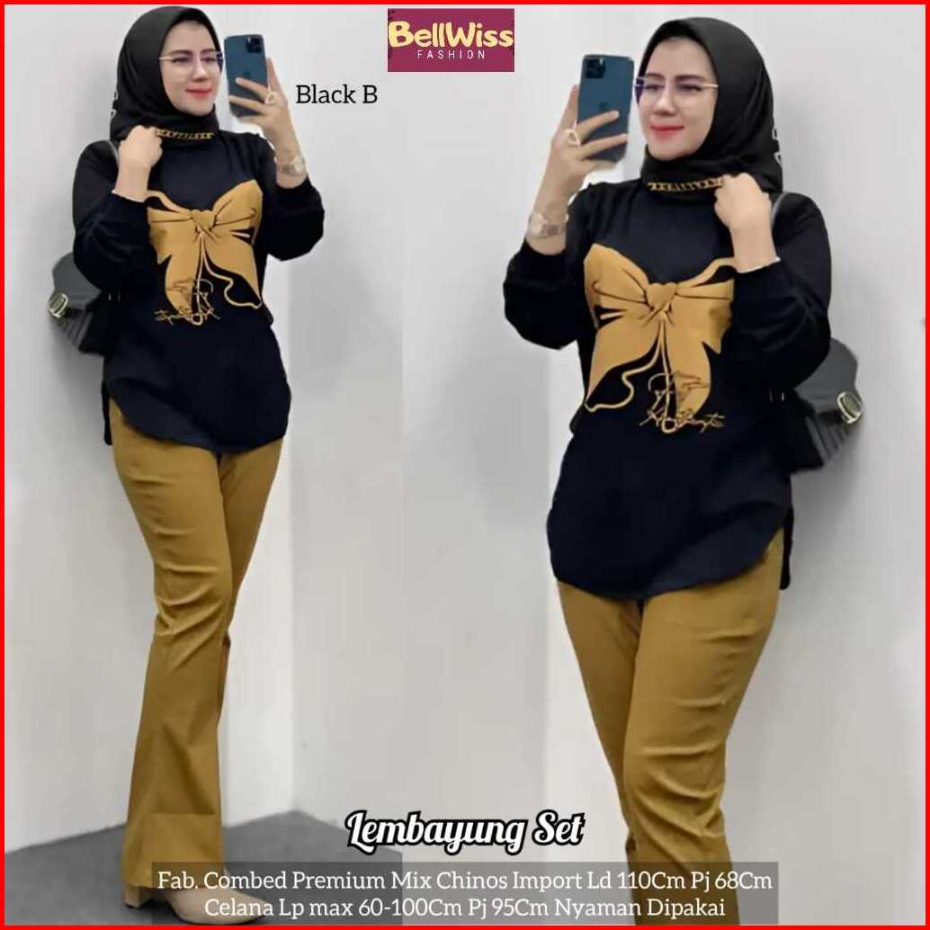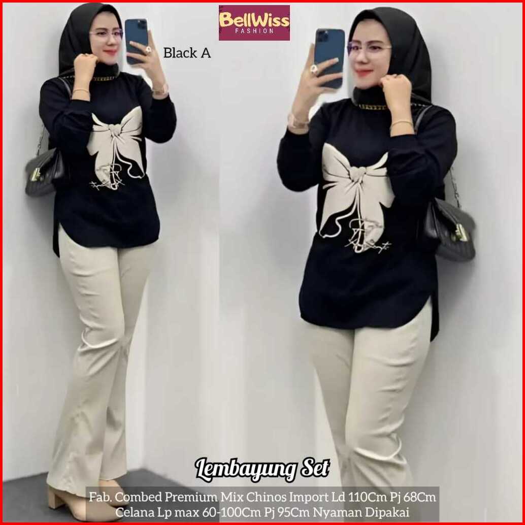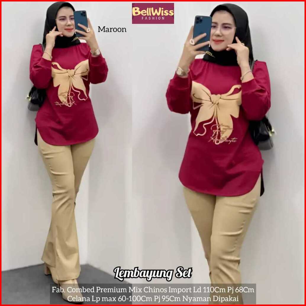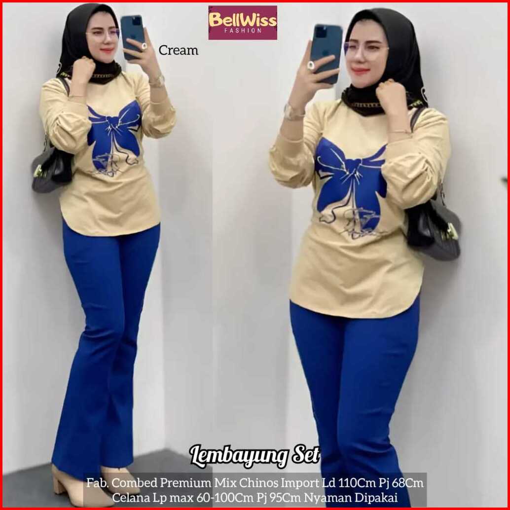 Lembayung Set By Bellwiss Setelan Wanita Atasan Mix Celana Bahan Combed Mix Chinos Premium