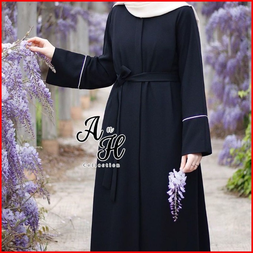 Gamis Abaya Dubai Polos Hitam Simple Dress Hadramaut Tarem Hadromaut Hitam Busui Polos List Saku Free Sabuk Belt