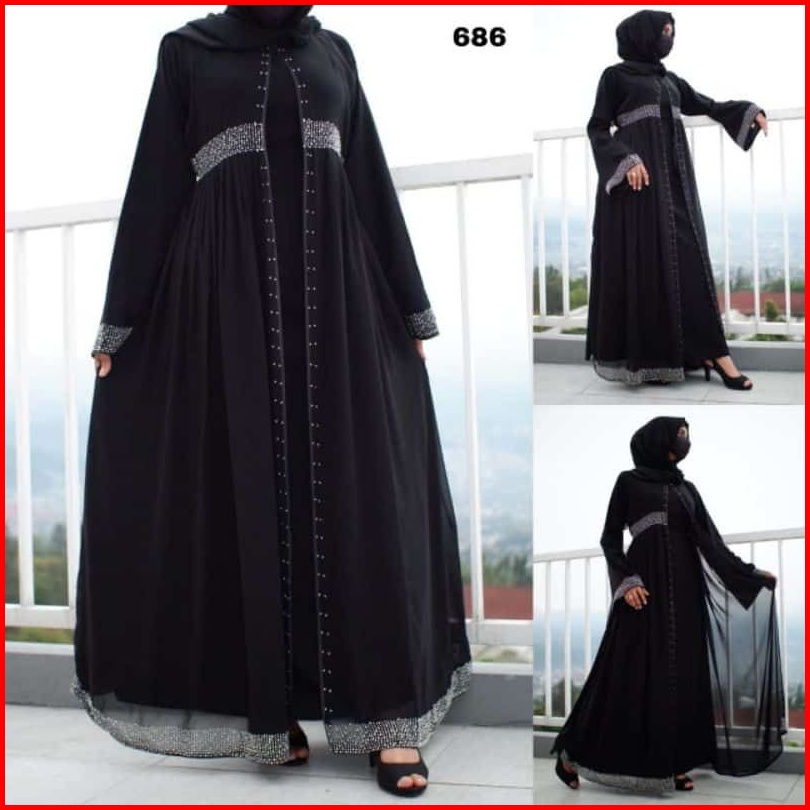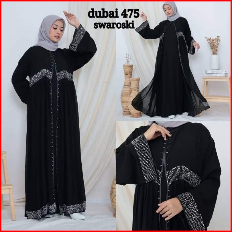 Abaya Gamis Hitam Jetblack Dubai Diamond 475 No Belt