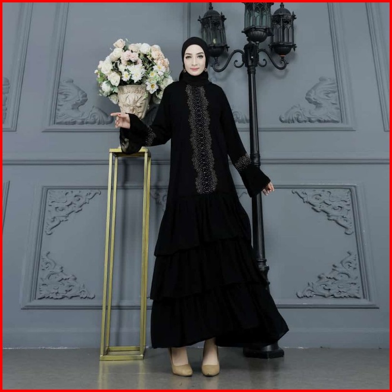 Abaya Gamis Hitam Dubai Humairo Bahan Jetblack Premium