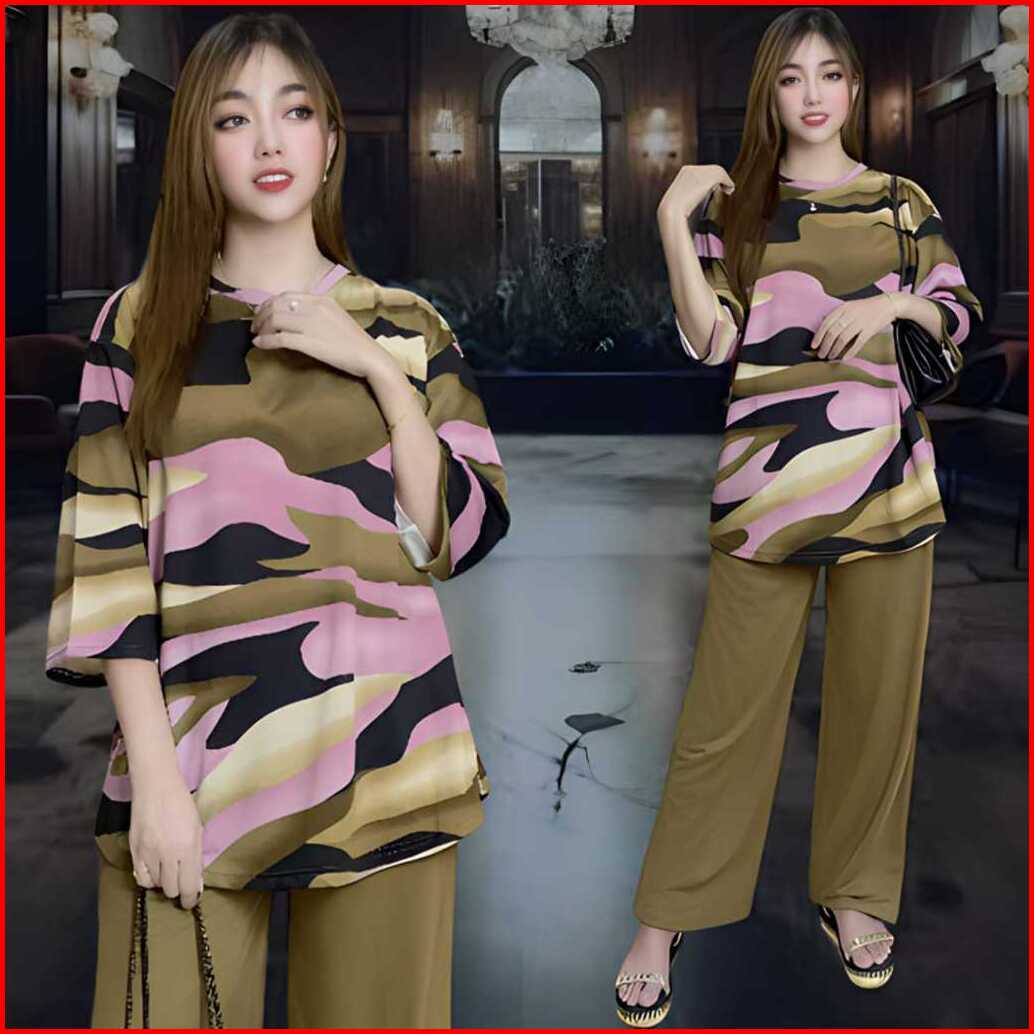 Dafania Setelan Wanita Ld 120 Celana Lurus Dan Atasan Oval Belahan Kiri Dan Kanan Oversize Wanita Celana Lurus Karet Kan