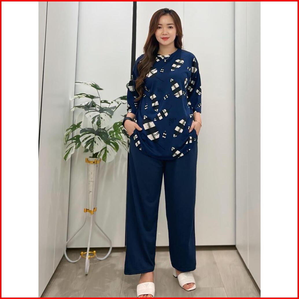 Setelan Wanita Terbaru Ld 120 Cm Motif Full Print Atasan Model Oval Lengan 3 4 Dan Celana Panjang Oneset Fashion Muslim