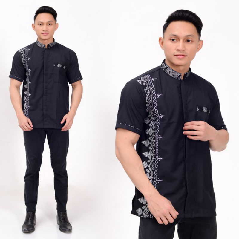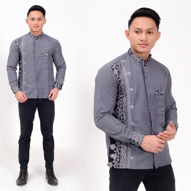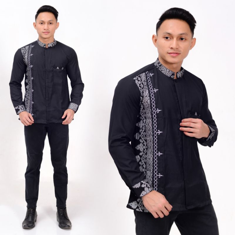 (Gratis Ongkir) BAJU KOKO LENGAN PANJANG BORDIR SAMPING SAKU DADA