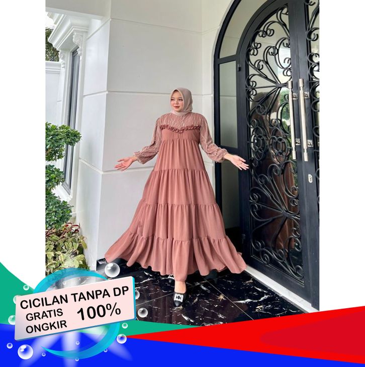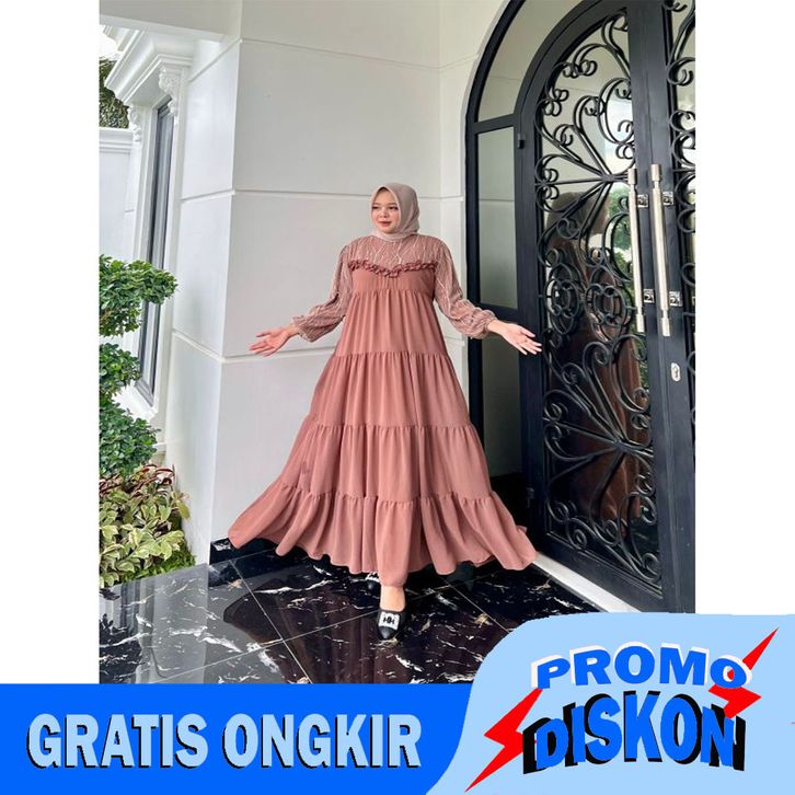 Reisya Dress Gamis Mix Brukat ll Gamis Dress Lebaran 2025 ll Dress Ceruty Baby Doll Premium ll Gamis Kekinian || gamis l