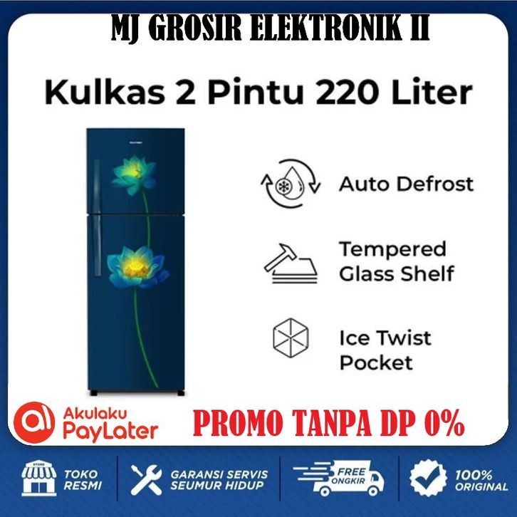FREE ONGKIR POLYTRON Kulkas 2 Pintu Beauty Steel 220 liter PRB 237LB TANPA BUNGA ES GARANSI RESMI