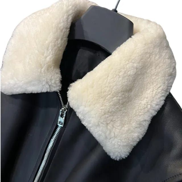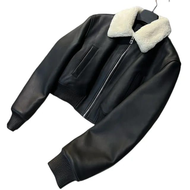 JAKET WOMEN CROP LEATHER KERAH BULU