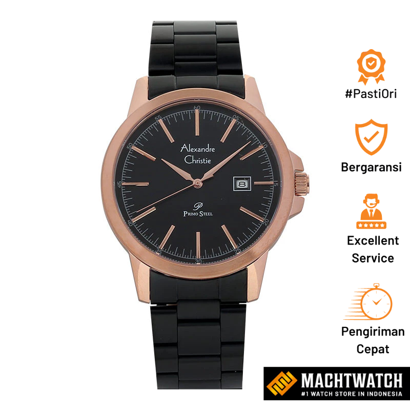 Jam Tangan Pria Alexandre Christie Primo Steel AC 1008 MD BBRBA Black Dial Black Stainless Steel Strap