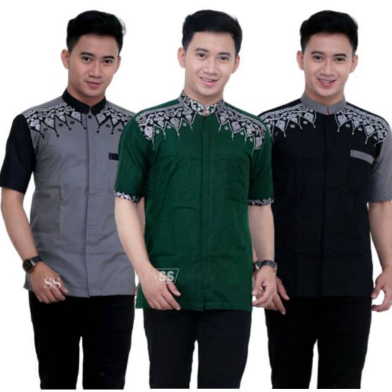 (Gratis Ongkir) Baju koko batik pria dewasa lengan pendek/Kemeja koko gus azmi syubbanul muslimin hadroh azahir/Kemko Ba