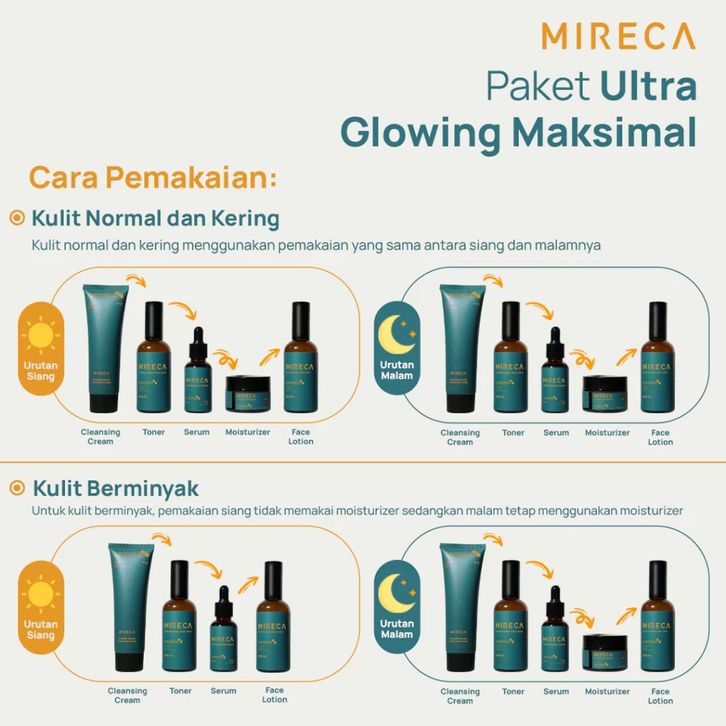Mireca Paket Skincare Paket isi 5 item | 5 kali lebih efektif untuk mencerahkan | mengatasi jerawat serta flek hitam