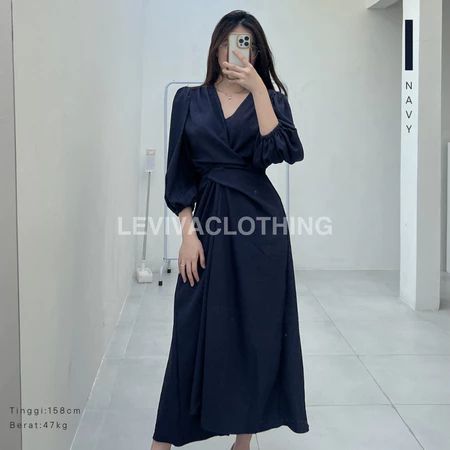 Leviva Abigail Dress Dress Pesta Midi V Neck Korean Style Dress Lebaran 2025 Motif Terbaru