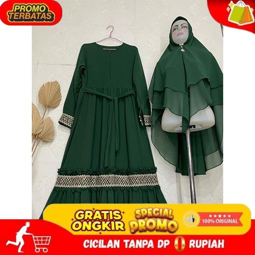 [Mall] Gamis Syari Ceruty Mix Renda Depan dan Tangan | Gamis Syari Busui | Gamis Set Khimar Terbaru