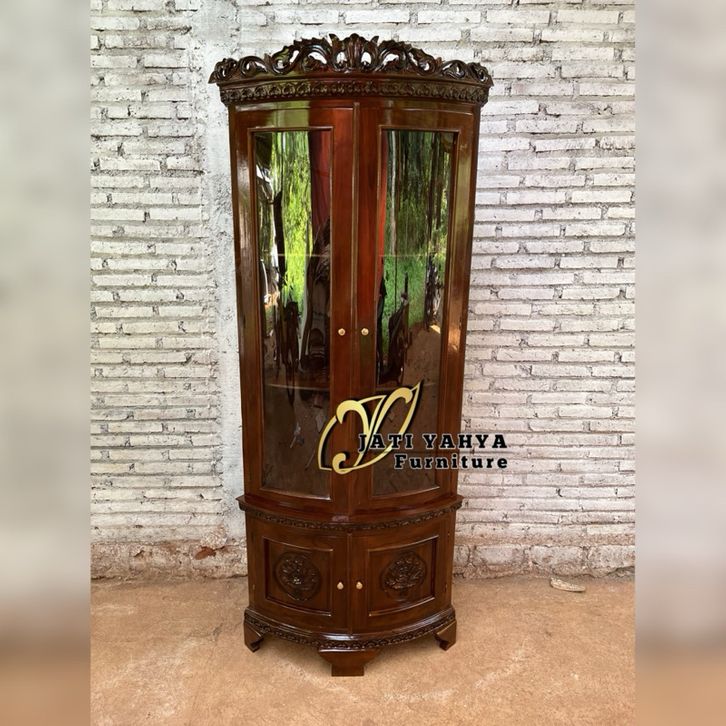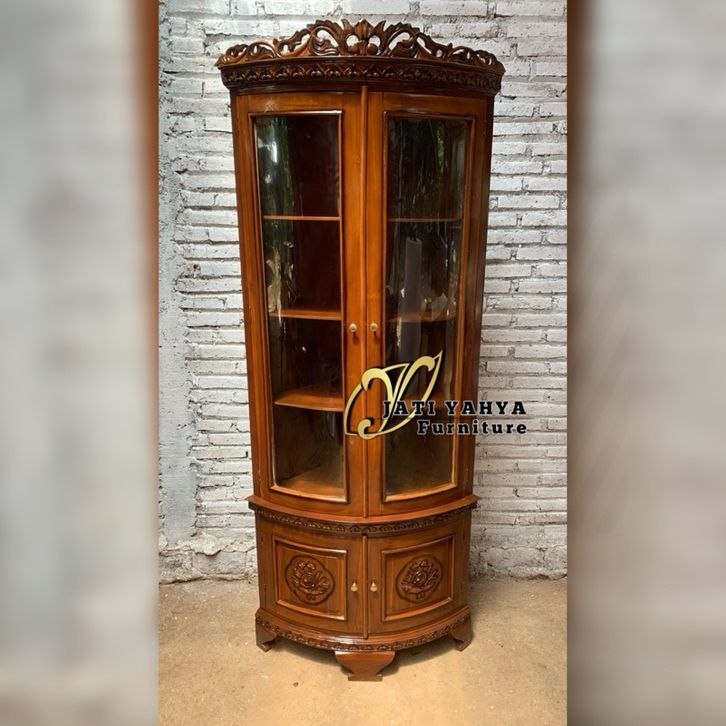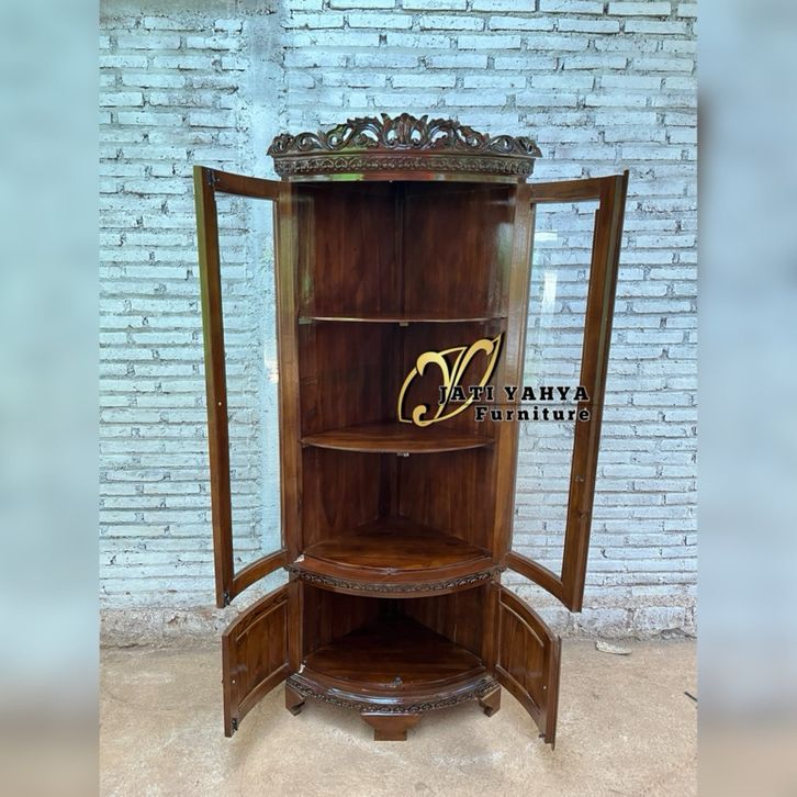 Lemari hias sudut jati / lemari pojok / leLemari himari piala TERMURAH READY STOK LANGSUNG DARI PENGRAJIN PERTAMA JEPARA