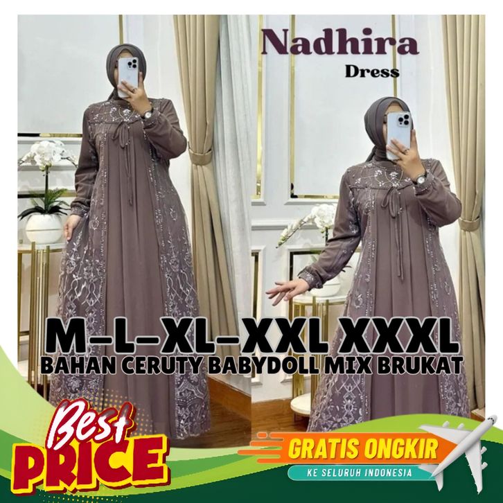 [Mall] Gamis Terbaru Elegan Mewah Nadhira Dress BL Size M L XL XXL XXXL LD 100-130 CM Bahan Ceruty Babydoll Mix