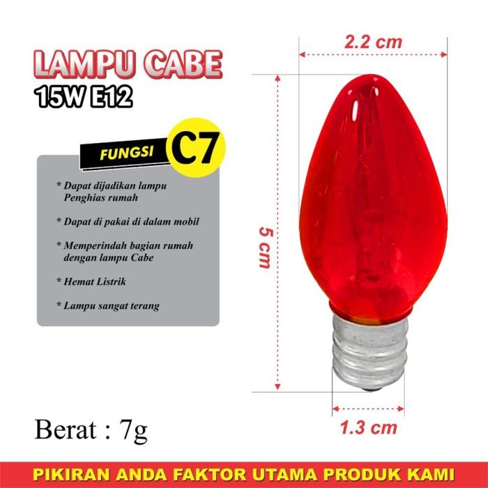 Promo Lampu Cabe E12 E 12 C7 10W 10 W Merah Biru Kuning Hijau Putih 10 Watt - Biru Elegan