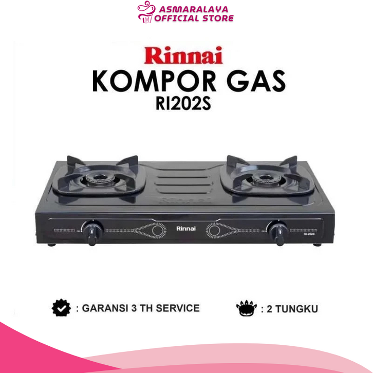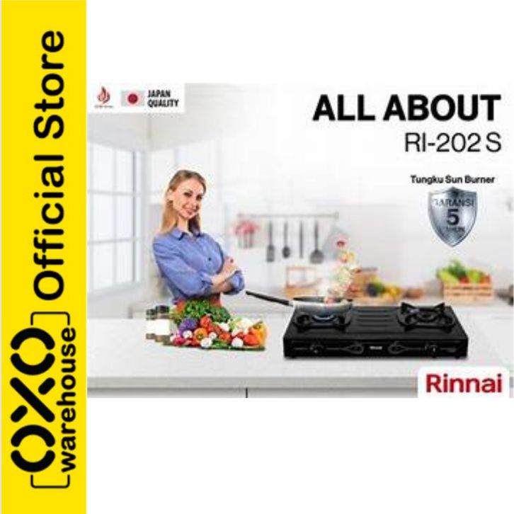 Rinnai RI-202 S Kompor Gas Stove Teflon 2 Tungku RI-202S / RI202 S / RI 202S / RI202S / RI 202 S - Hitam